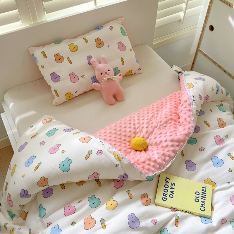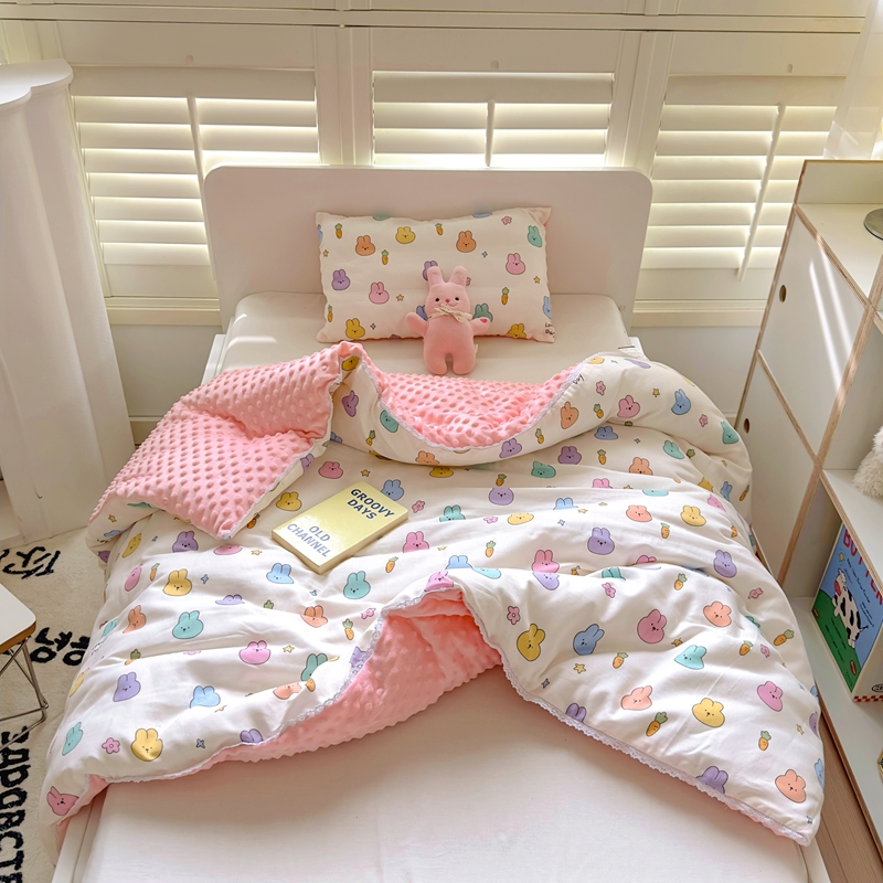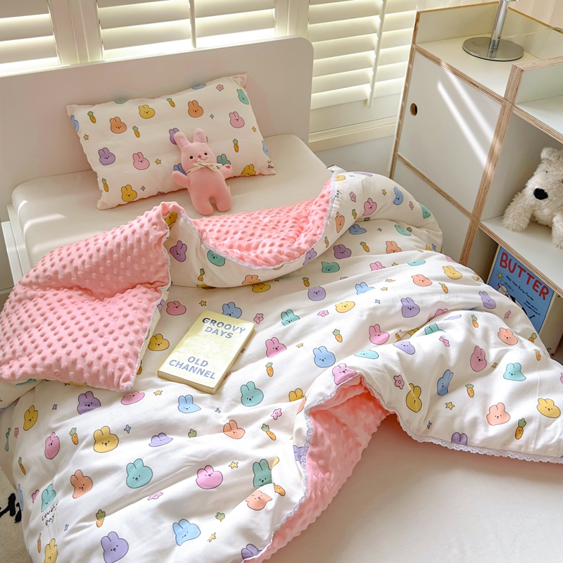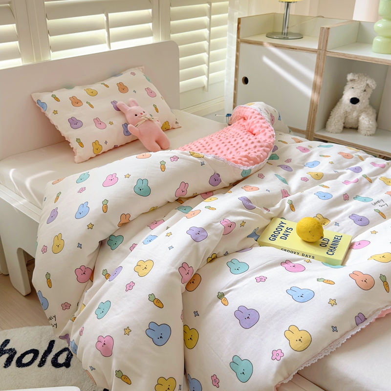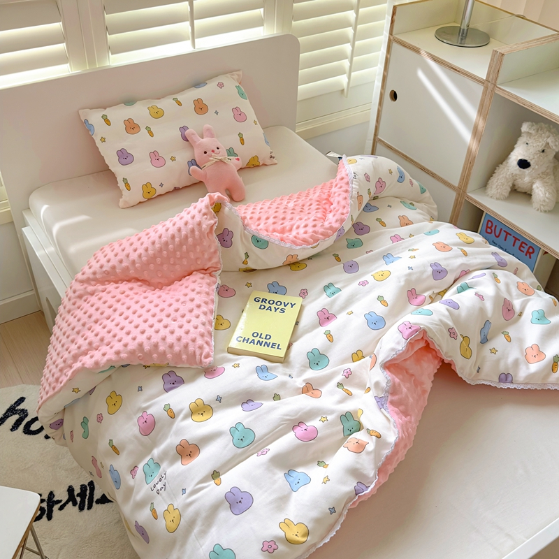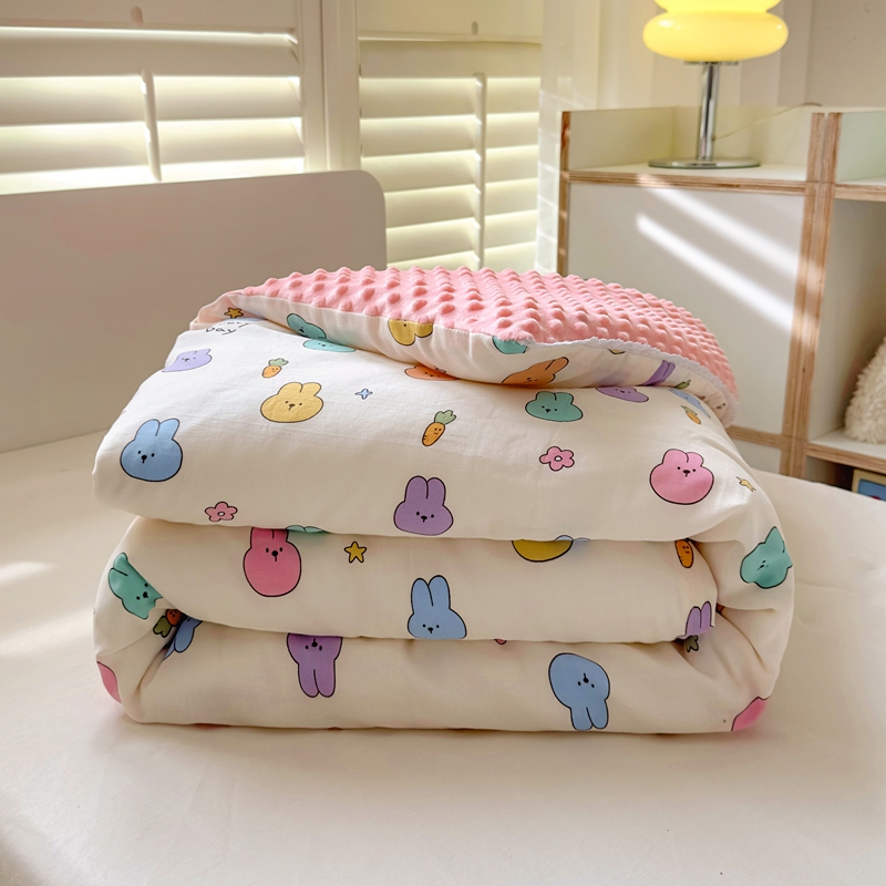 商品名称:希诺家居 2023新款豆豆被全棉A类双层纱婴幼儿豆豆被可拆洗学生宿舍被子 五彩兔兔