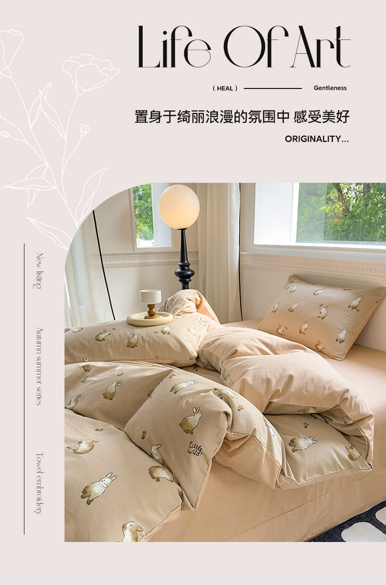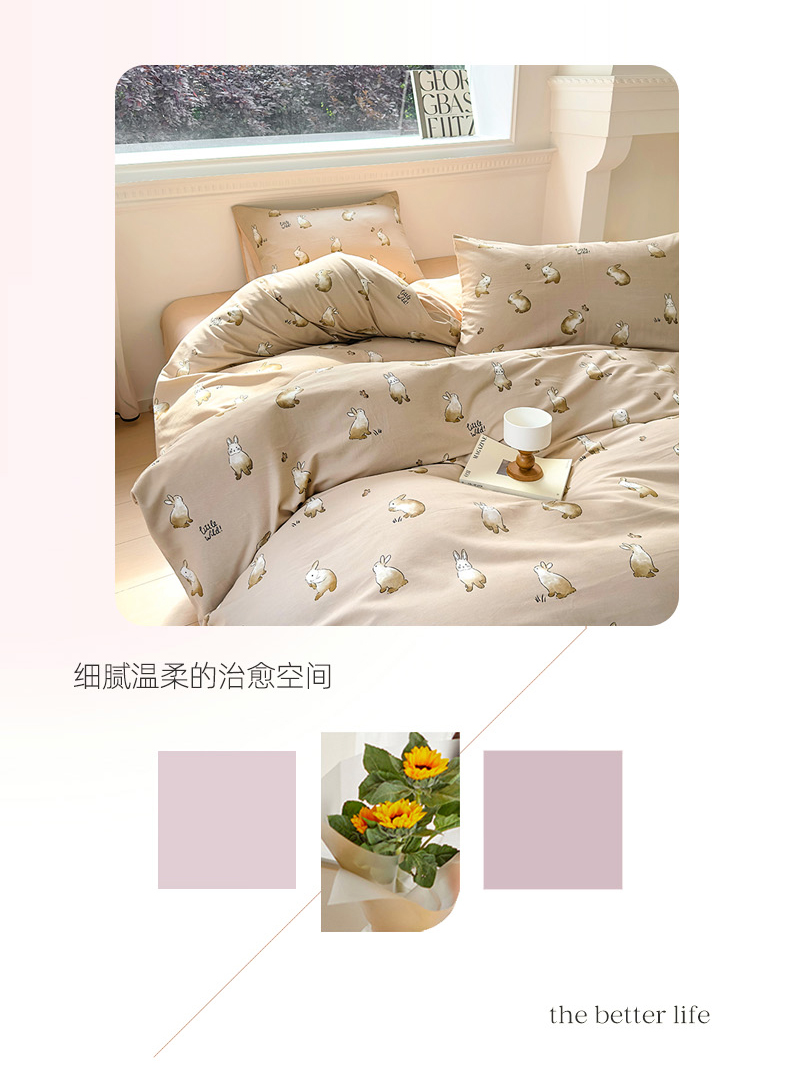 (总)田野 2022新款水洗棉小清新小碎花全棉四件套,花丛,花涧,绿婉,曼舞,桃夭,甜馨草莓,兔兔,银杏