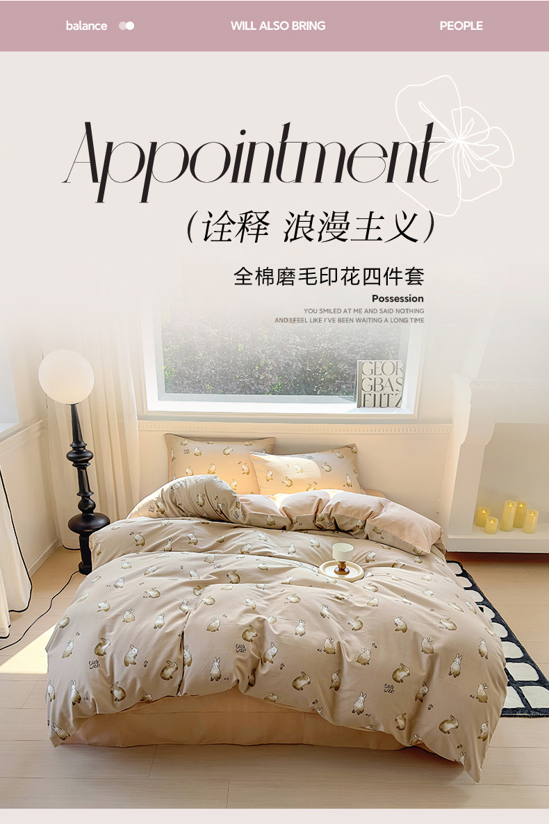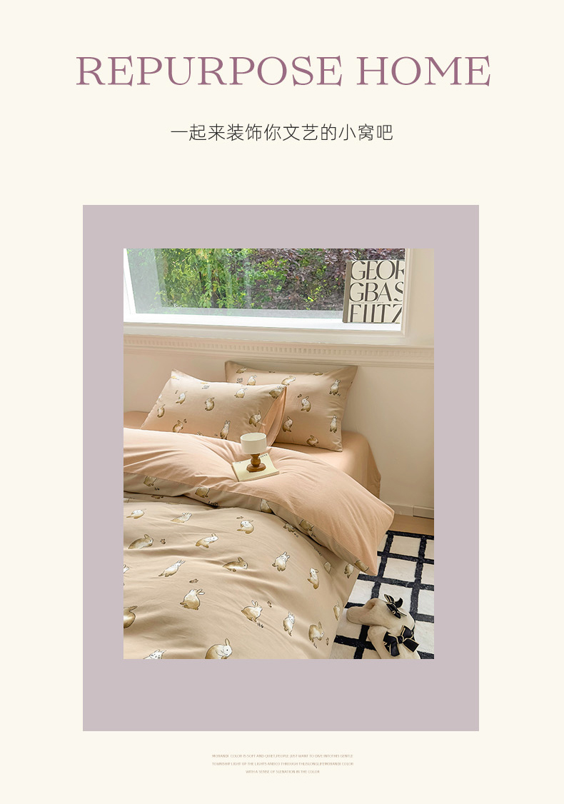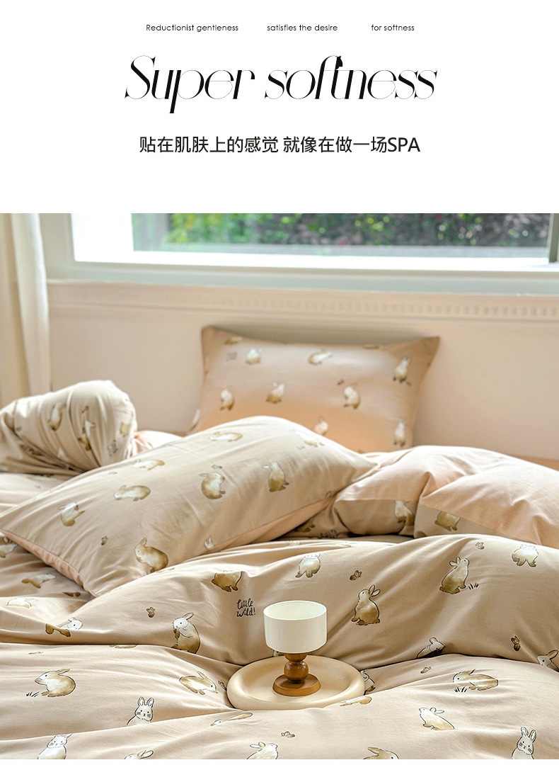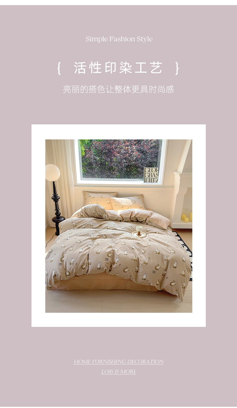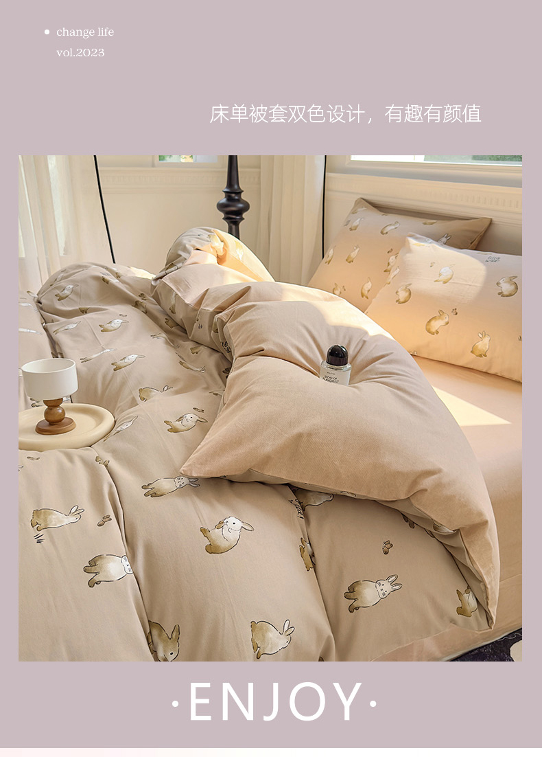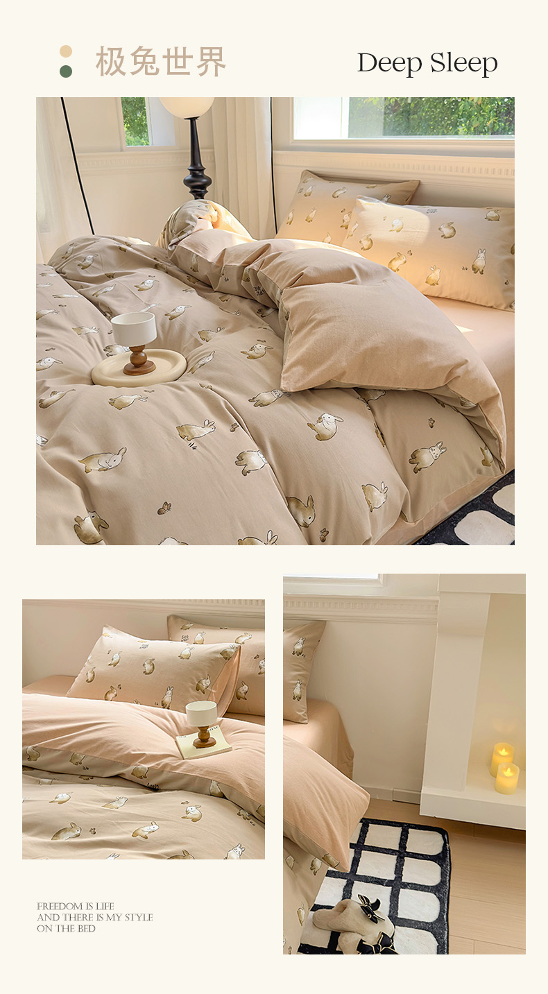 田野 2023新款全棉加厚活性磨毛四件套 极兔世界
