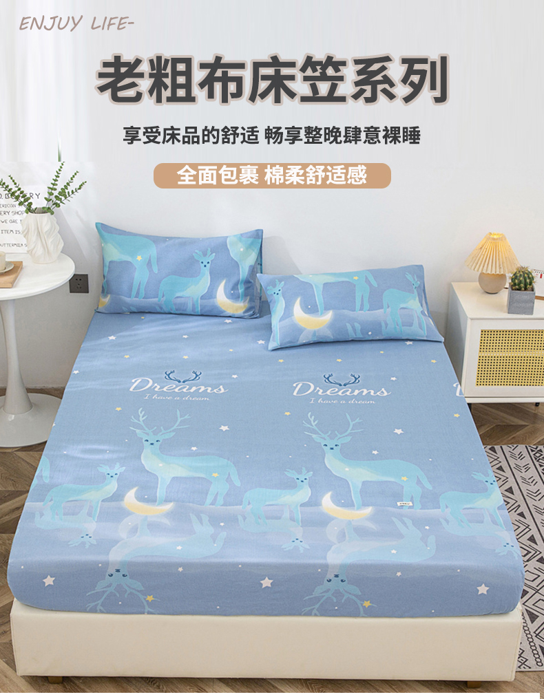 • 91家纺网 家纺一手货源 找家纺 棉乐町 2025新款老粗布床笠 梦幻小鹿