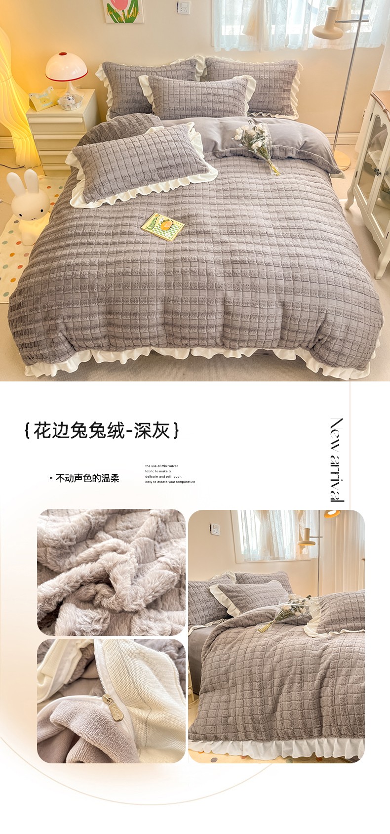 沐辰家居 2023新款兔兔牛奶绒花边款四件套 花边兔兔绒-深灰