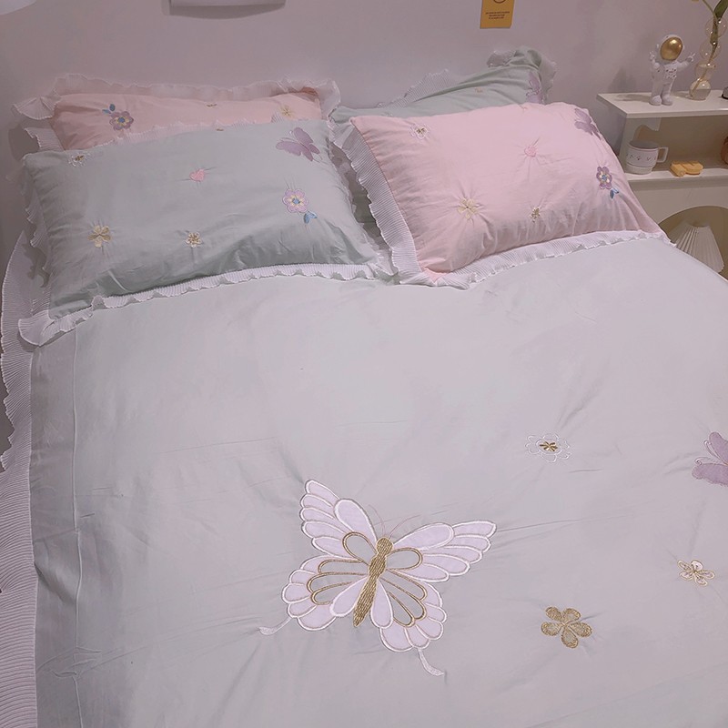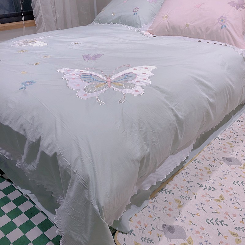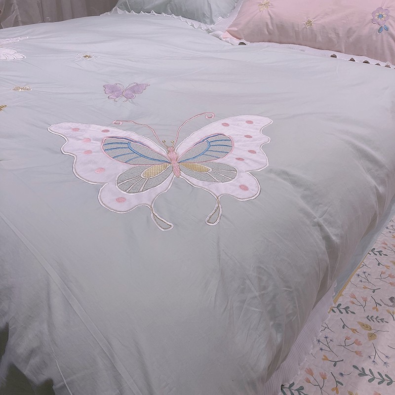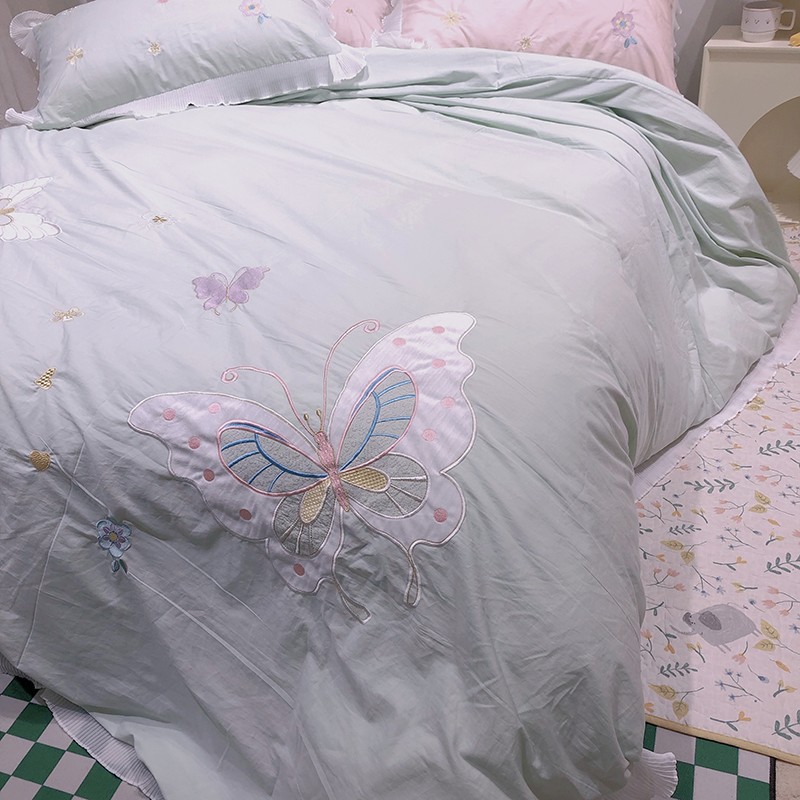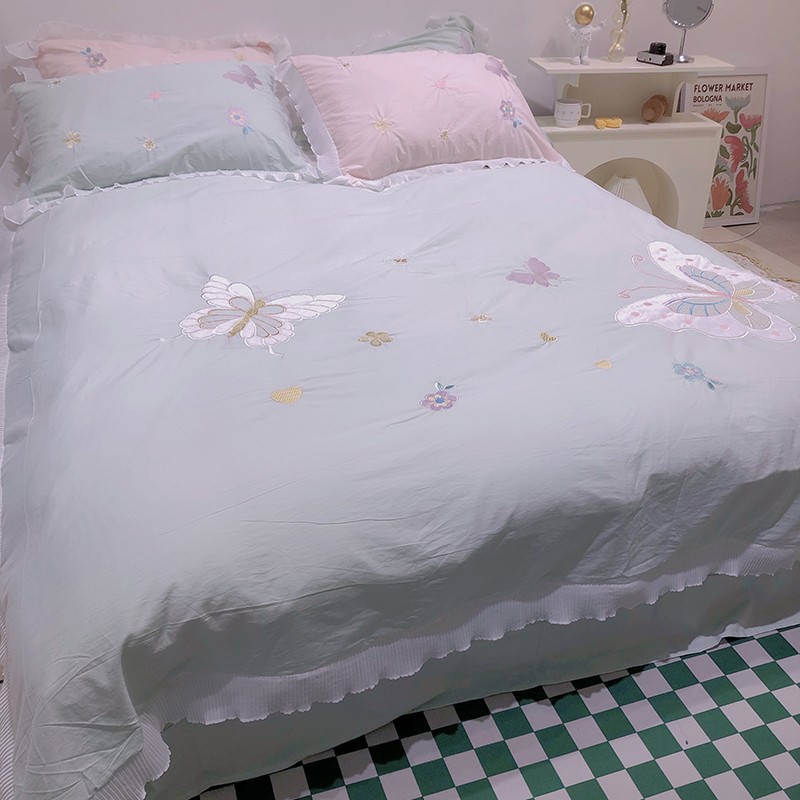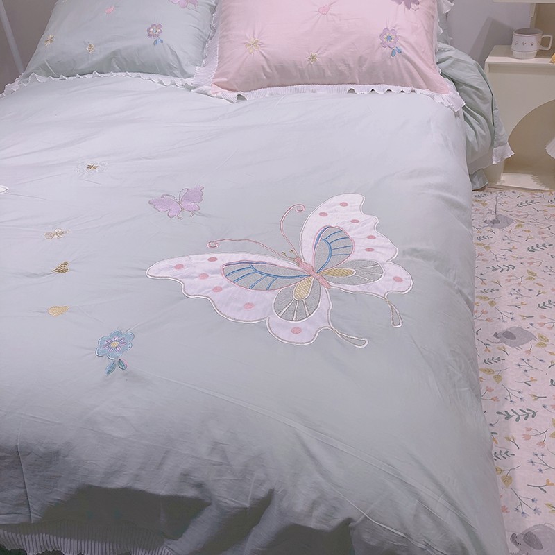 2023新款A类母婴级全棉水洗棉绣花四件套--蝴蝶夫人系列实拍图 蝴蝶夫人-绿