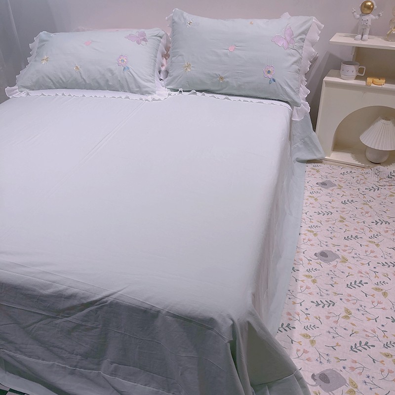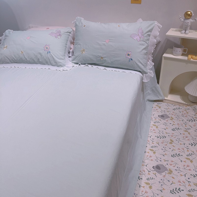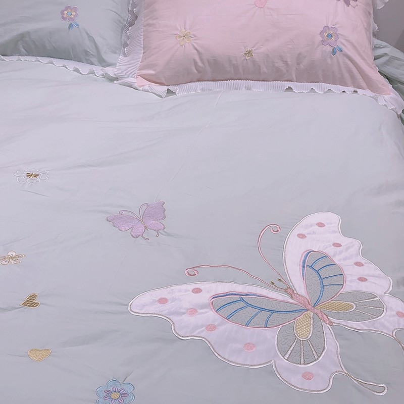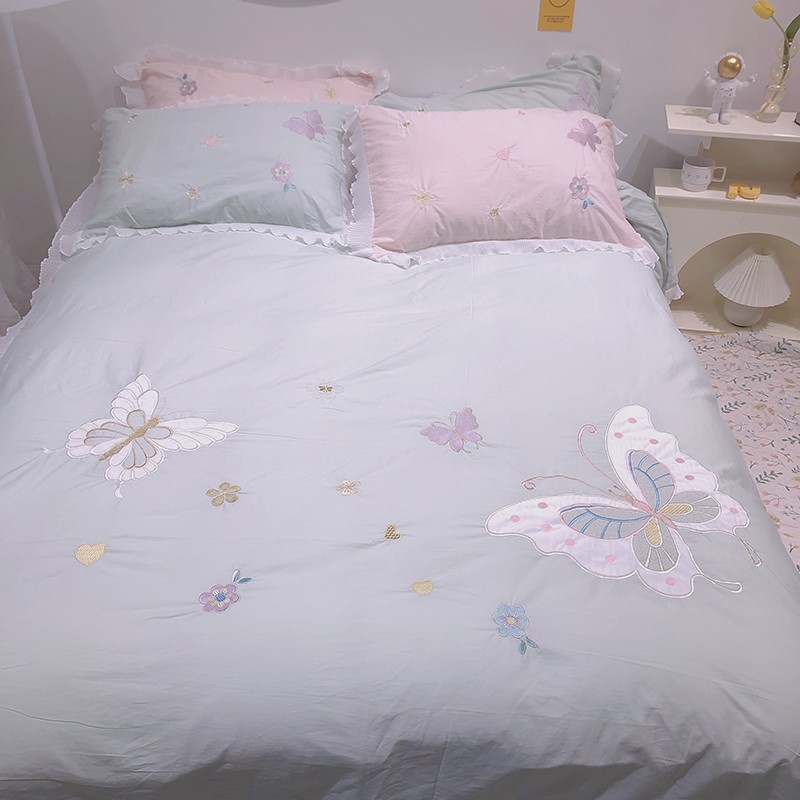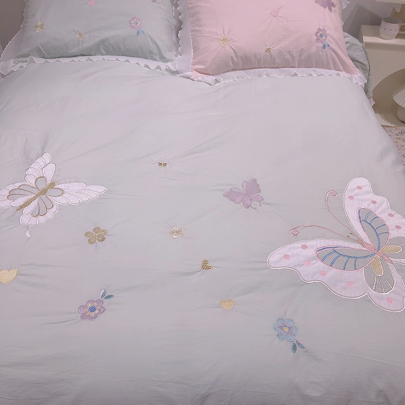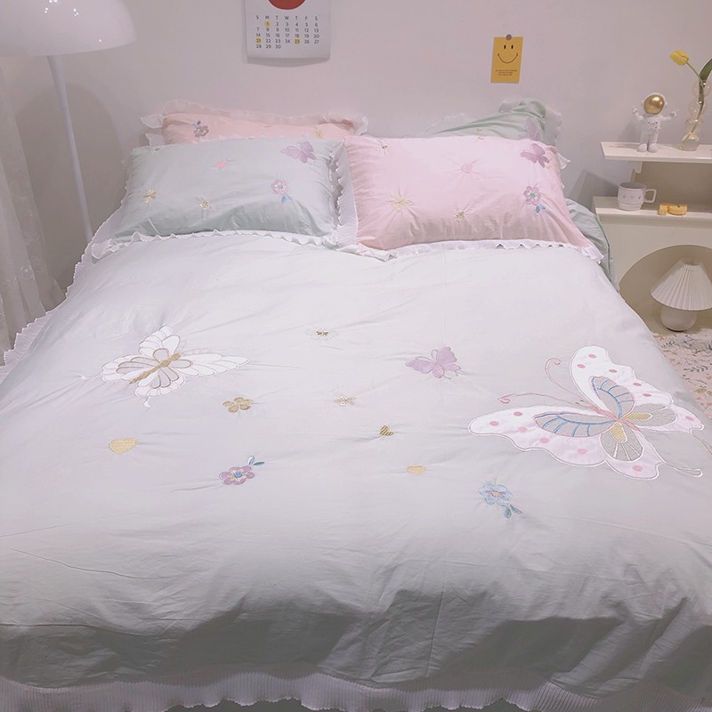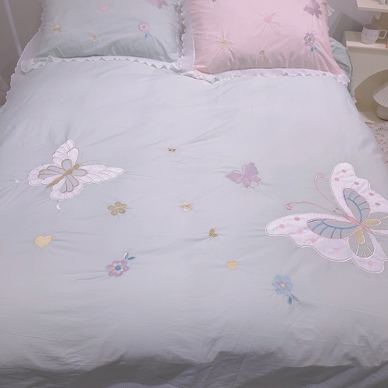 2023新款A类母婴级全棉水洗棉绣花四件套--蝴蝶夫人系列实拍图 蝴蝶夫人-绿