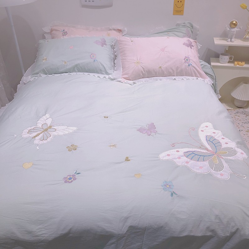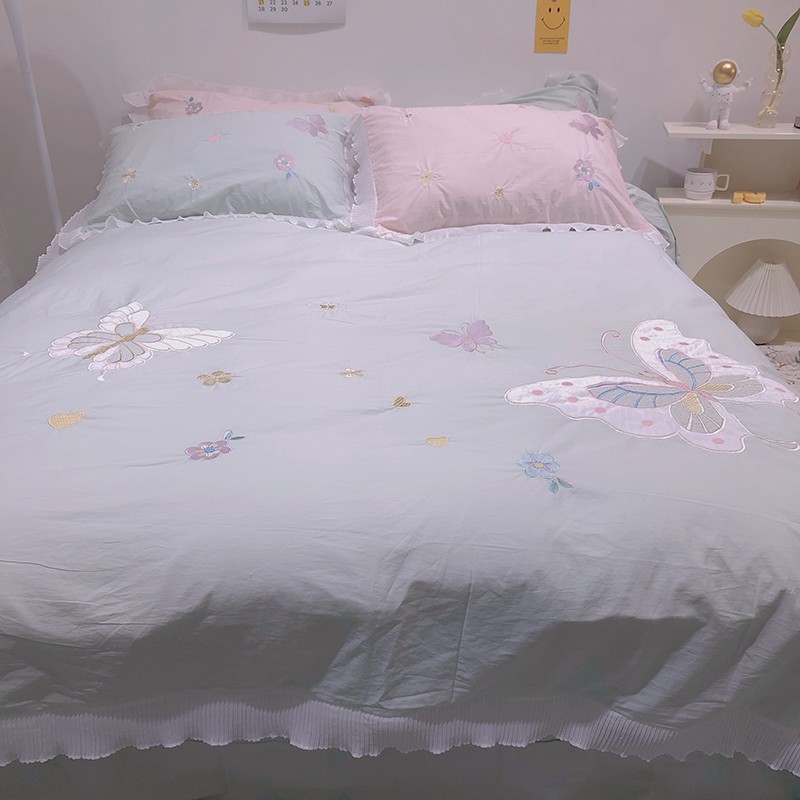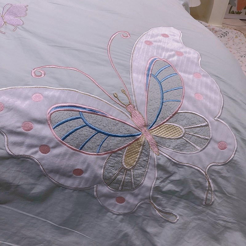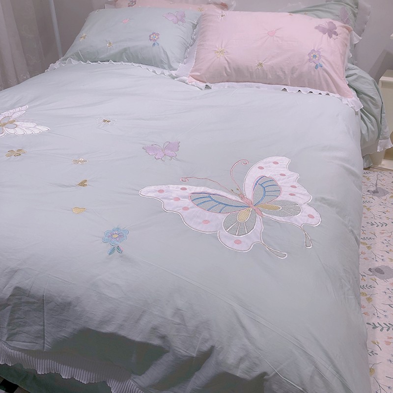 商品名称:2023新款A类母婴级全棉水洗棉绣花四件套--蝴蝶夫人系列实拍图 蝴蝶夫人-绿