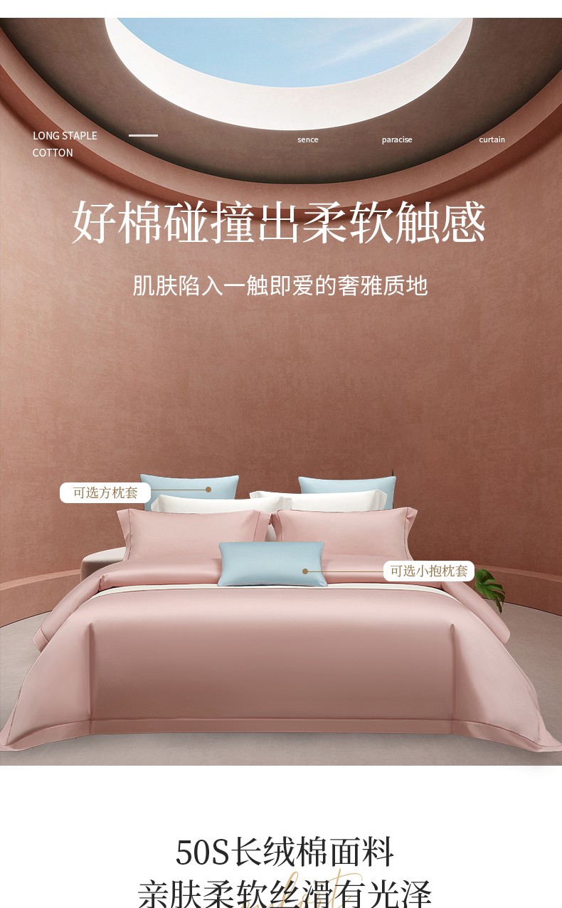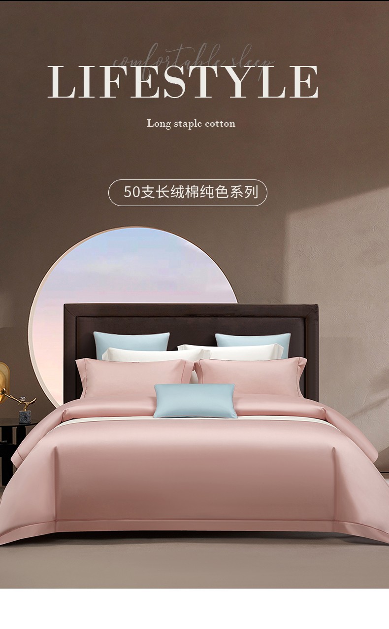 50支50S纯色长绒棉四件套可选七件套可定制直播爆款 明亮