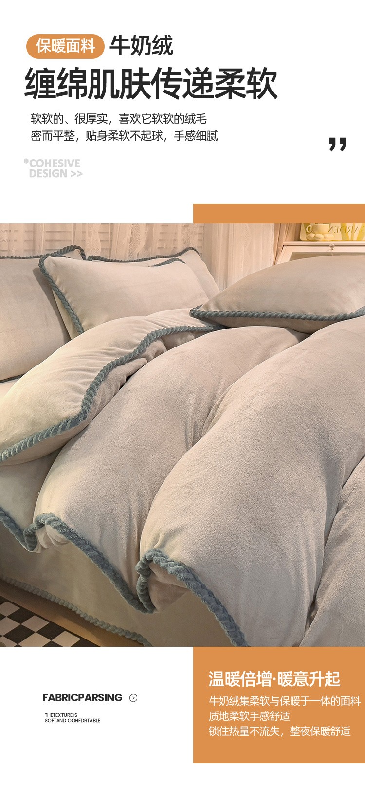 商品名称:2023新款加厚牛奶绒纯色优雅四件套 优雅-浅驼