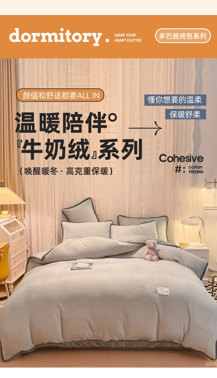2023新款加厚牛奶绒纯色优雅四件套 优雅-浅驼