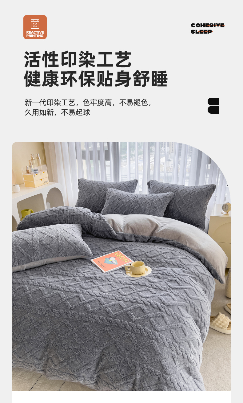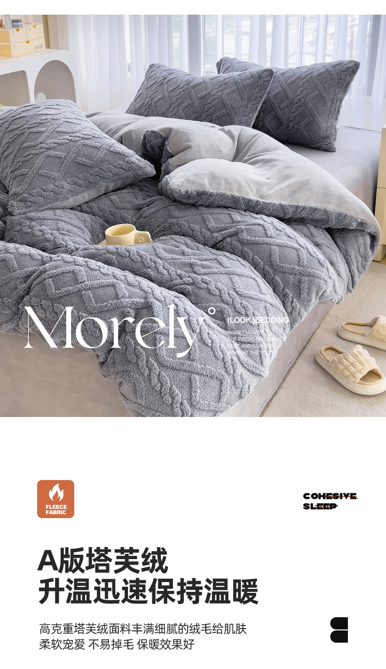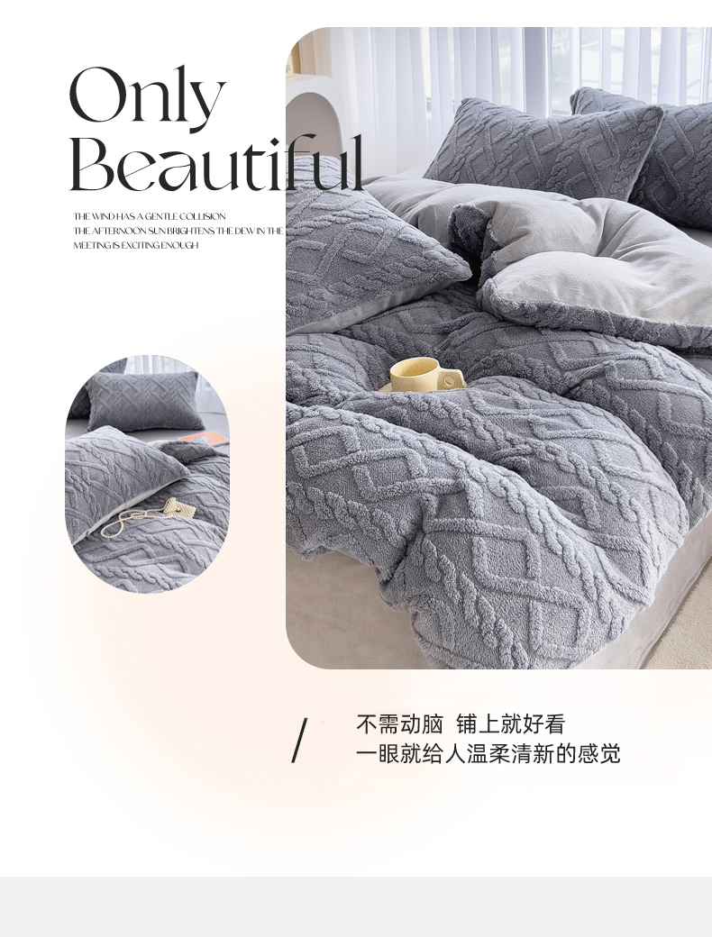 丝印良品 2023秋冬新款加厚塔芙绒简约款牛奶绒四件套 浅灰