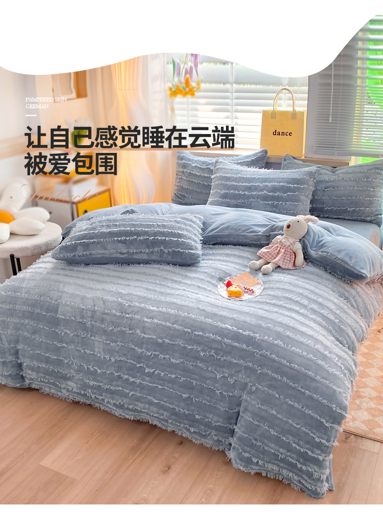 丝印良品 2023秋冬新款牛奶绒提花简约款牛奶绒四件套 莫兰迪灰