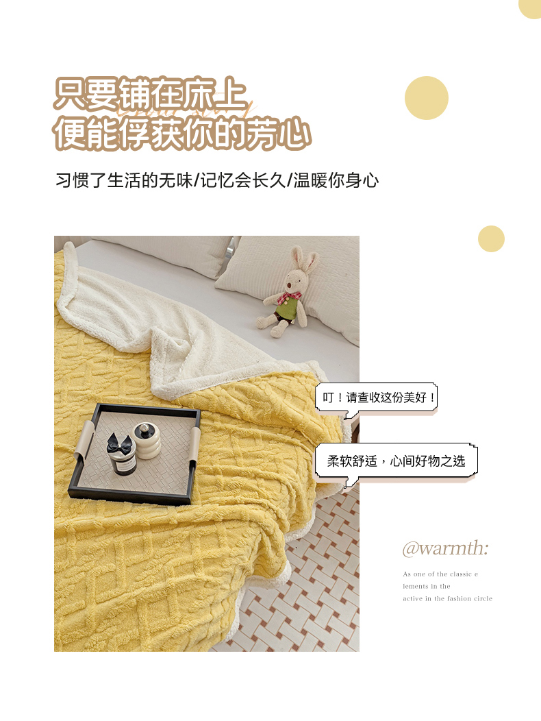 当前位置: 91家纺网 > 商品网购 > 毛毯休闲毯绒毯 > 毛毯 > 艾咪 新款230克加厚塔芙绒双层毯子羊羔绒毛毯 柠檬黄