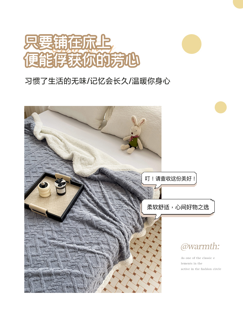 当前位置: 91家纺网 > 商品网购 > 毛毯休闲毯绒毯 > 毛毯 > 艾咪 新款230克加厚塔芙绒双层毯子羊羔绒毛毯 雾蓝