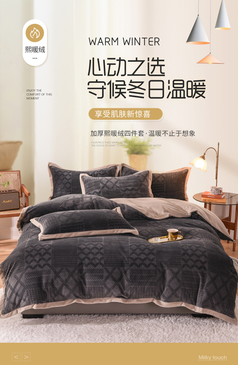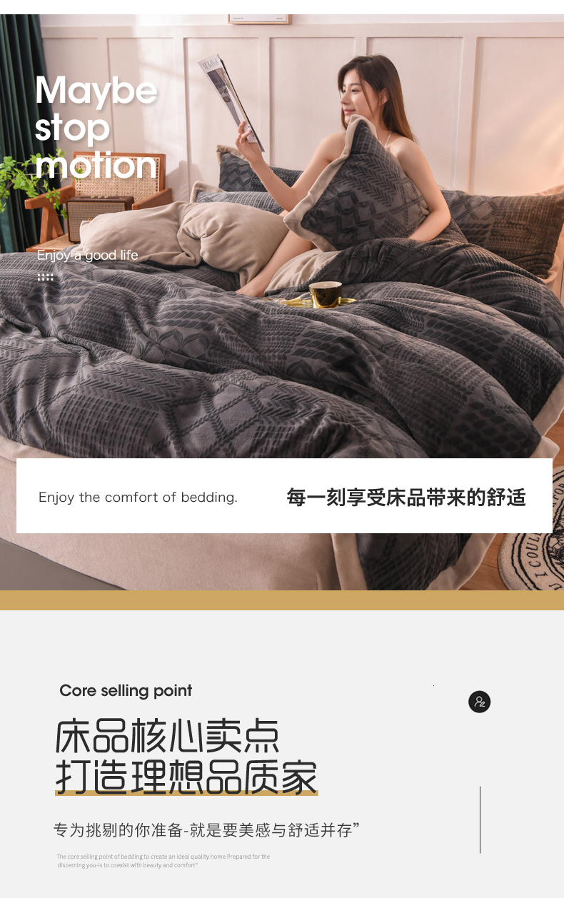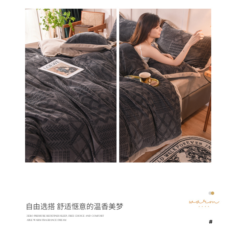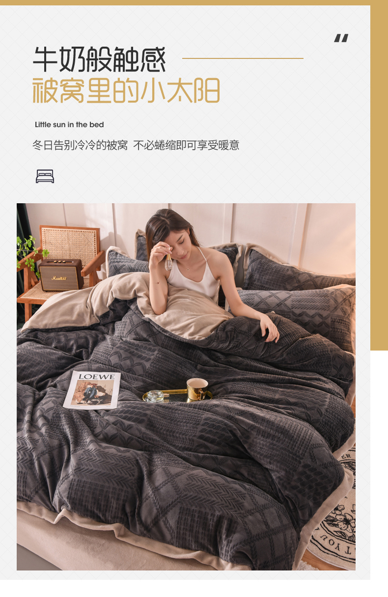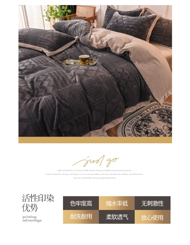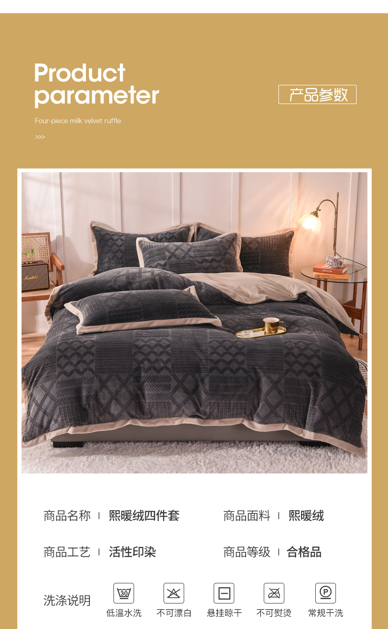 商品名称:丝印良品 2023唯爱雕花A版260克牛奶绒四件套-相机款 唯爱-深灰