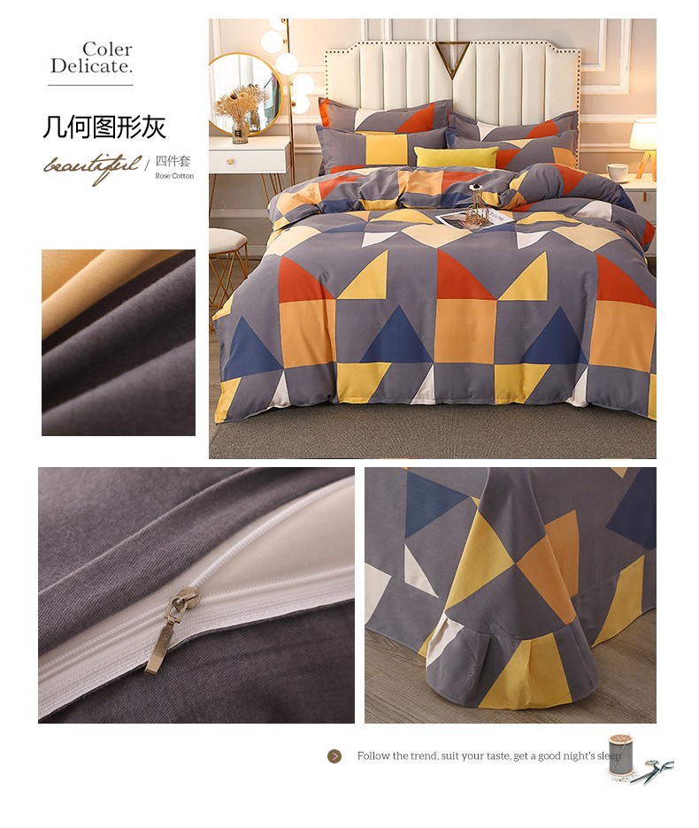 当前位置: 91家纺网 > 商品网购 > 床品套件 > 四件套 > 全棉普通四件套 > 晶缦 2023新款典雅系全棉活性磨毛四件套 几何图形灰