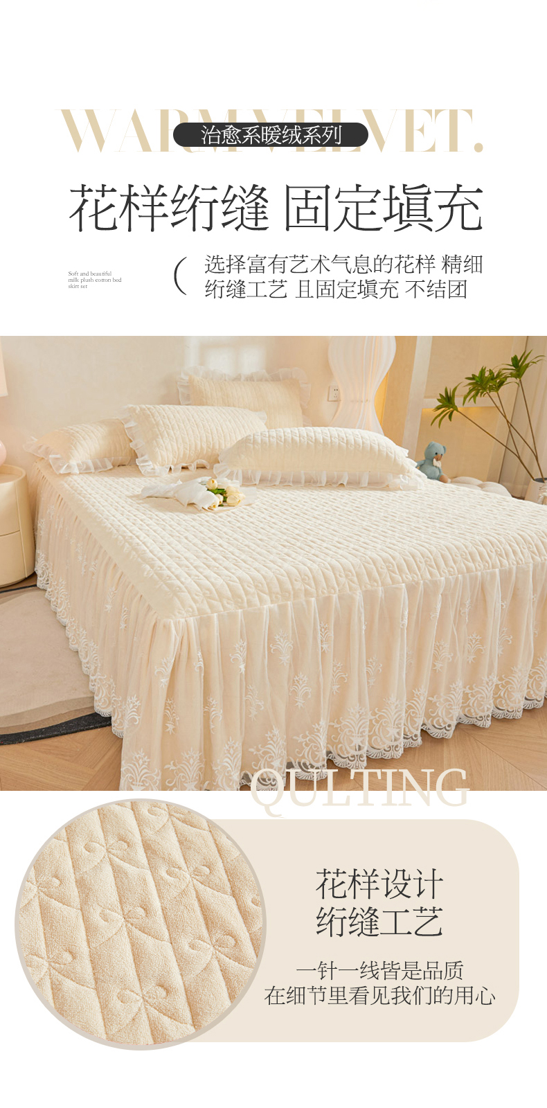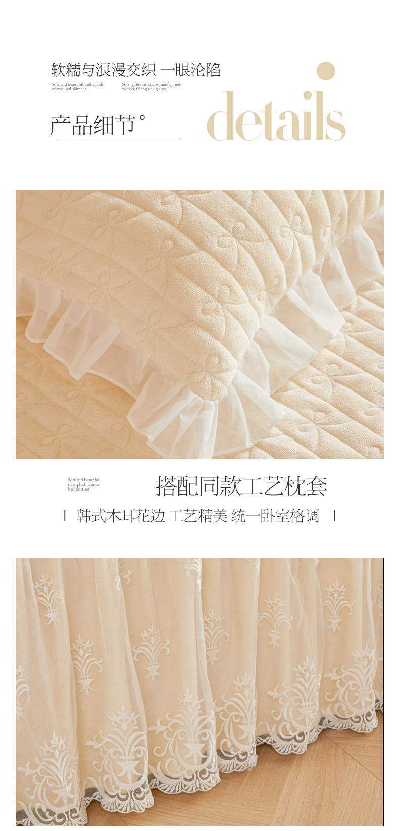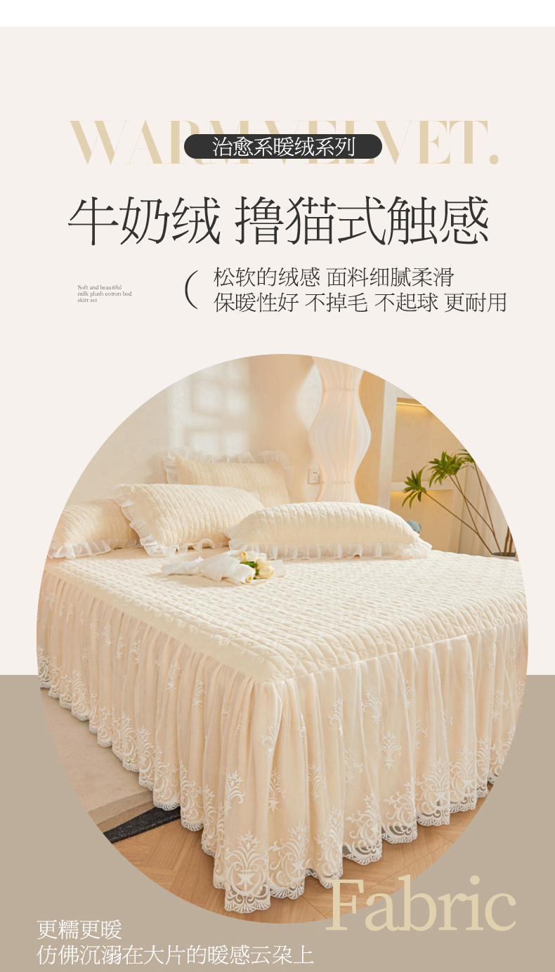商品名称:(总)虹星家纺 2023新款牛奶绒夹棉床裙套件清新系列-床裙款单床裙