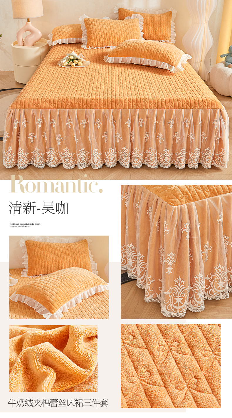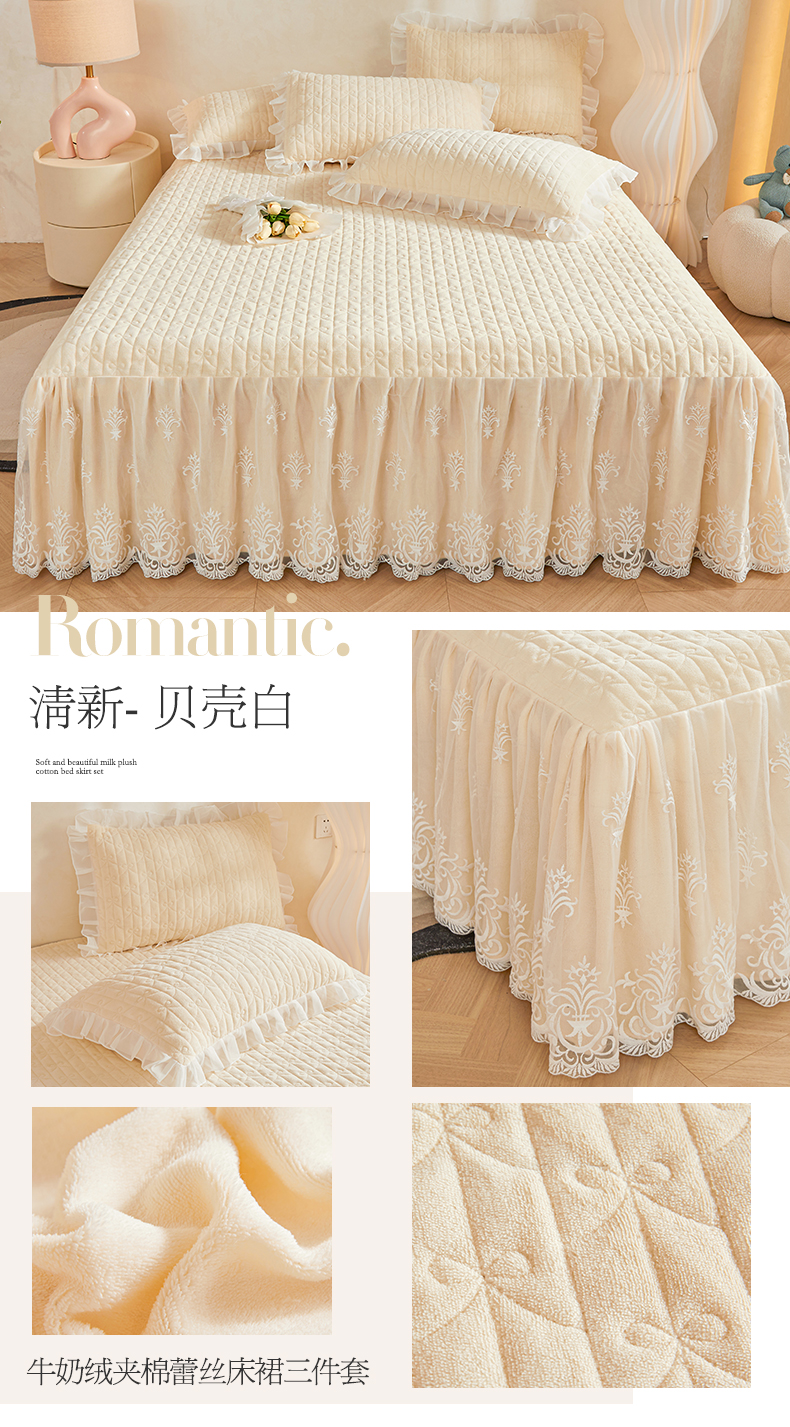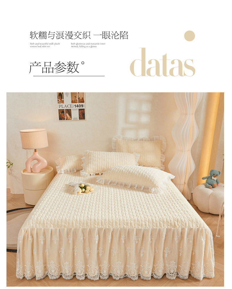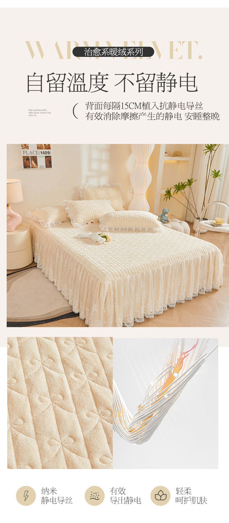 商品名称:(总)虹星家纺 2023新款牛奶绒夹棉床裙套件清新系列-床裙款单床裙
