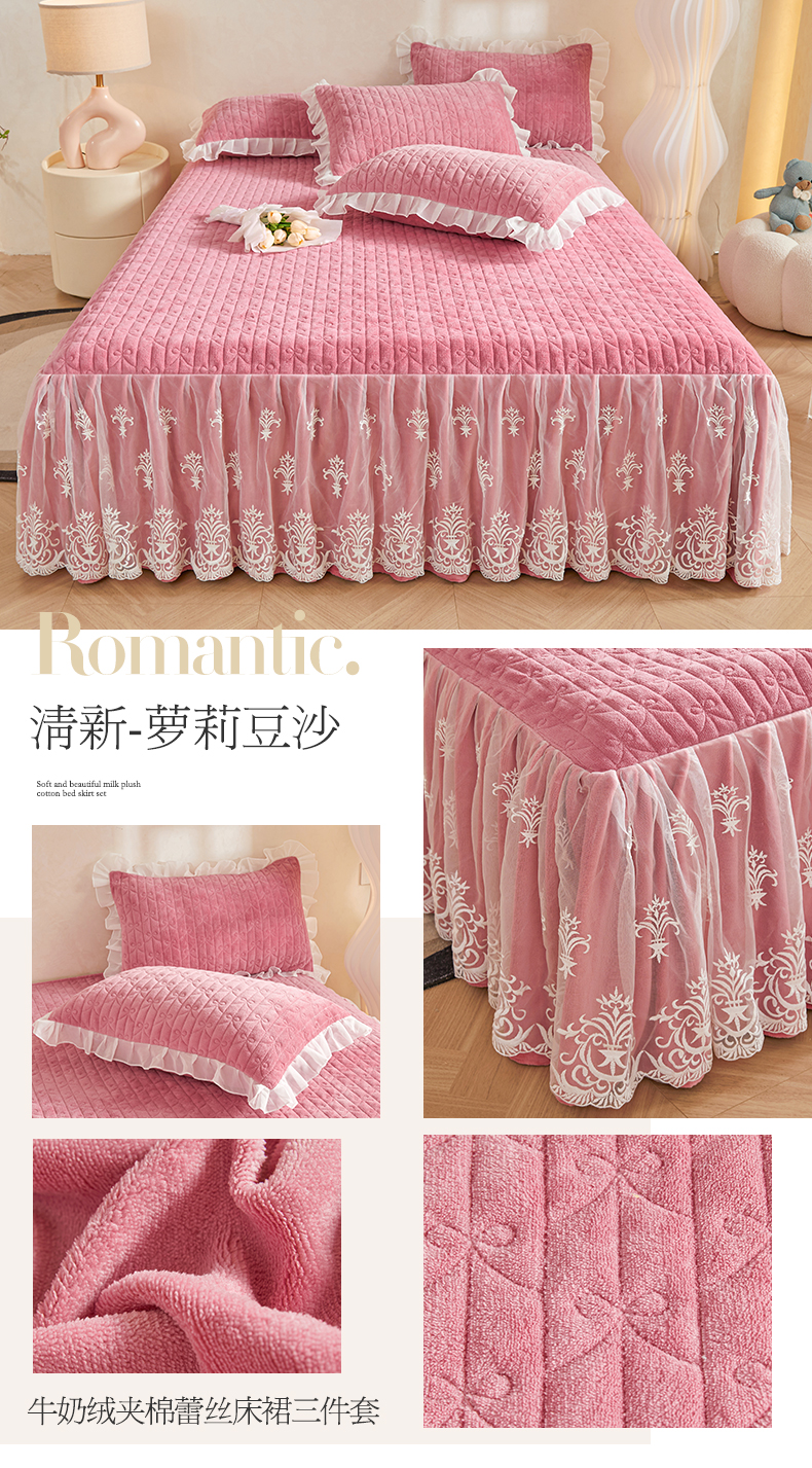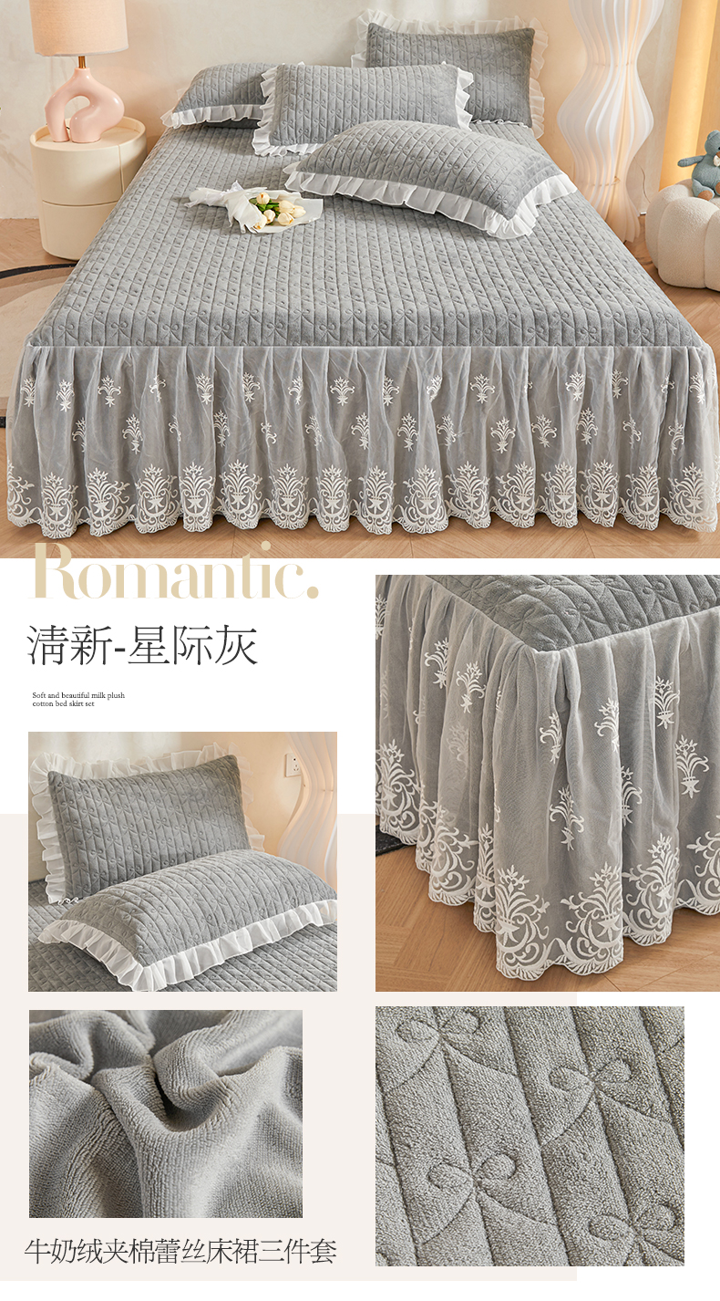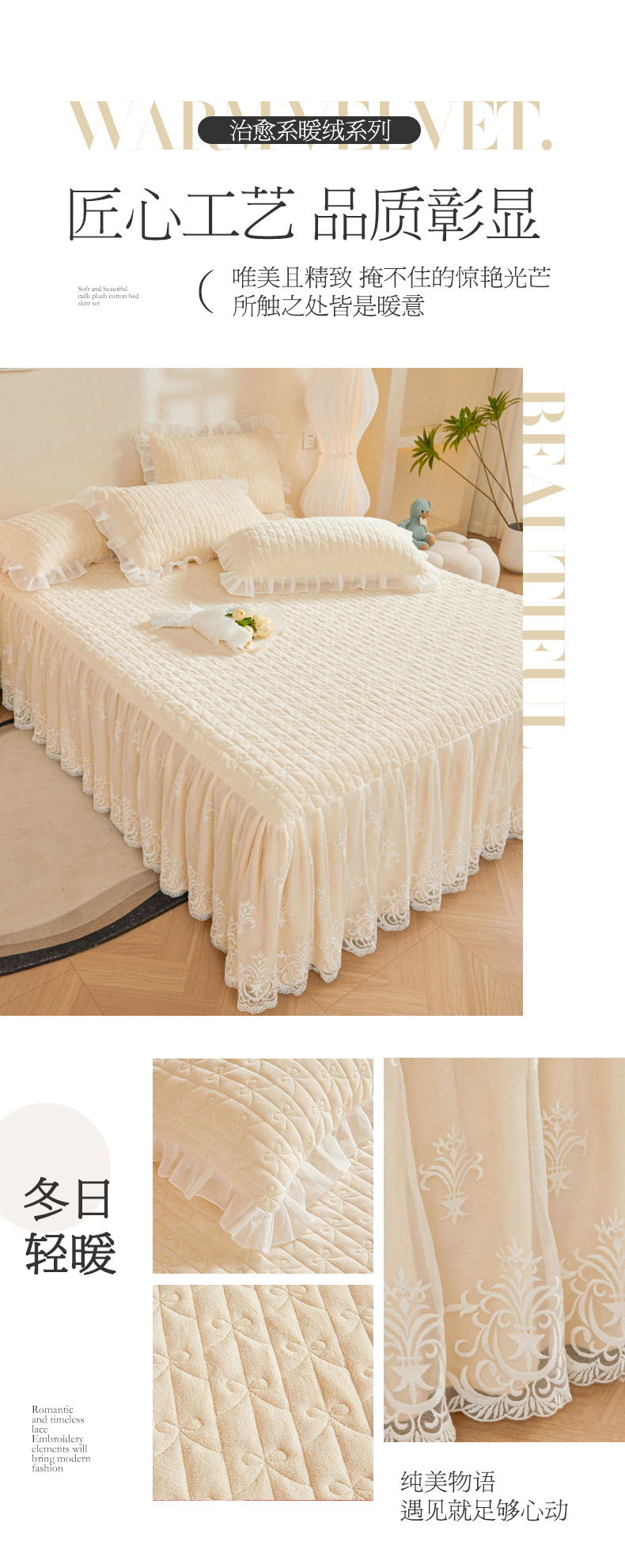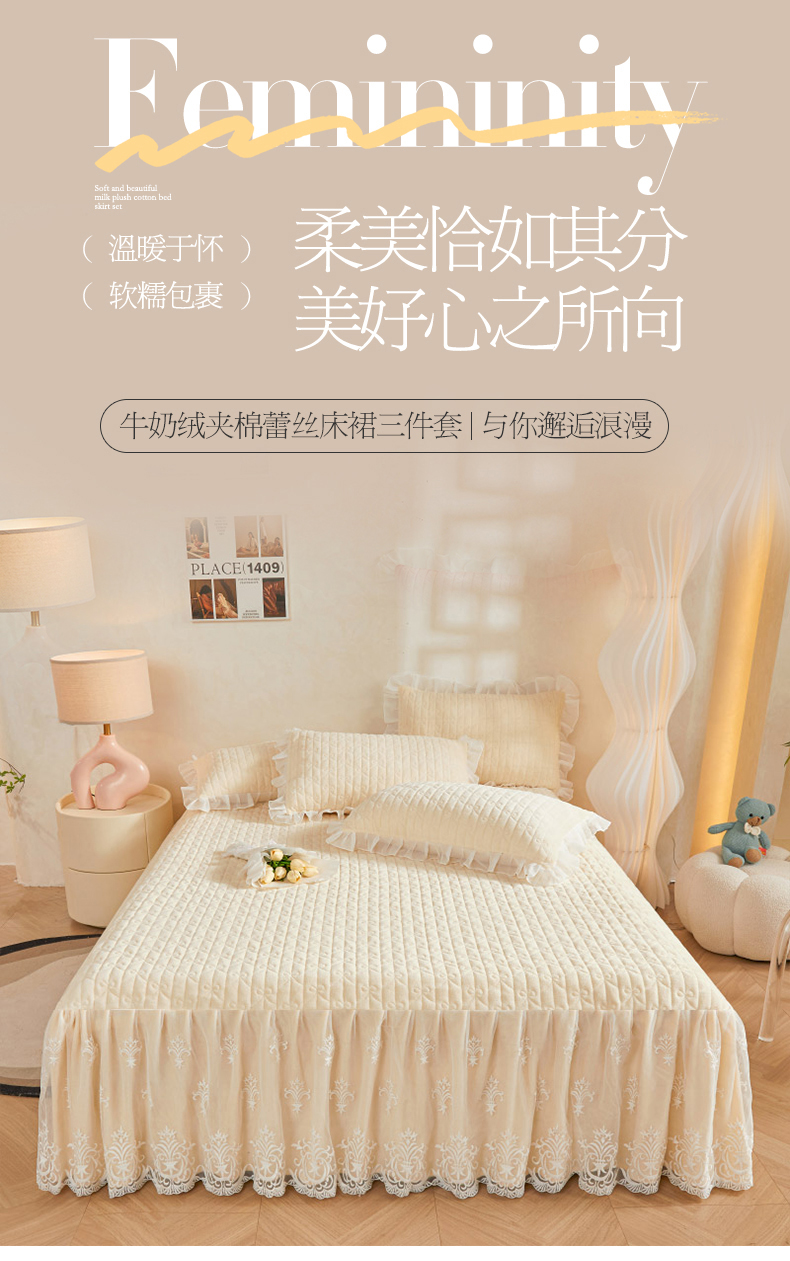 (总)虹星家纺 2023新款牛奶绒夹棉床裙套件清新系列-床裙款单床裙