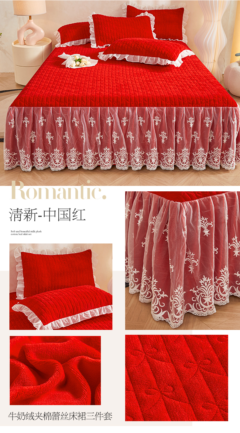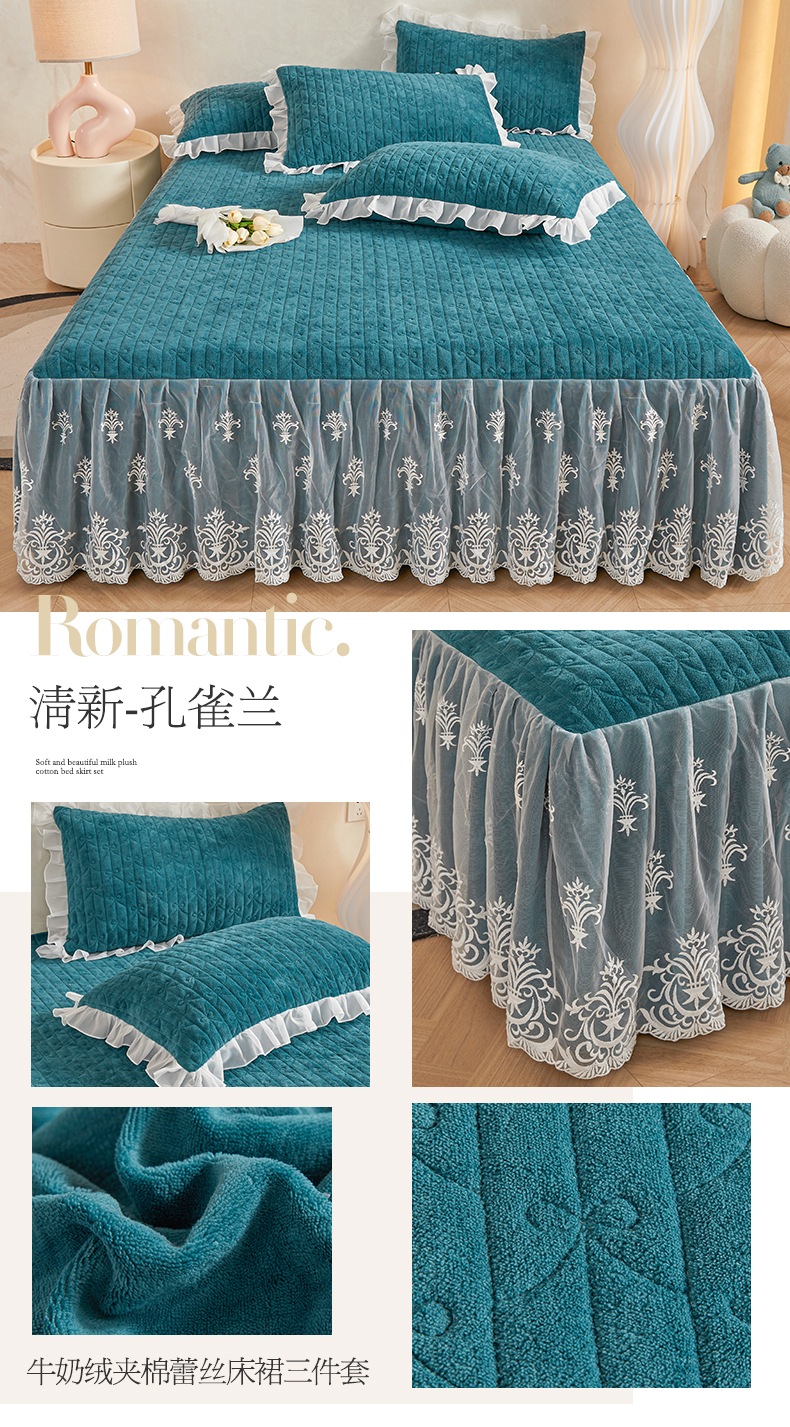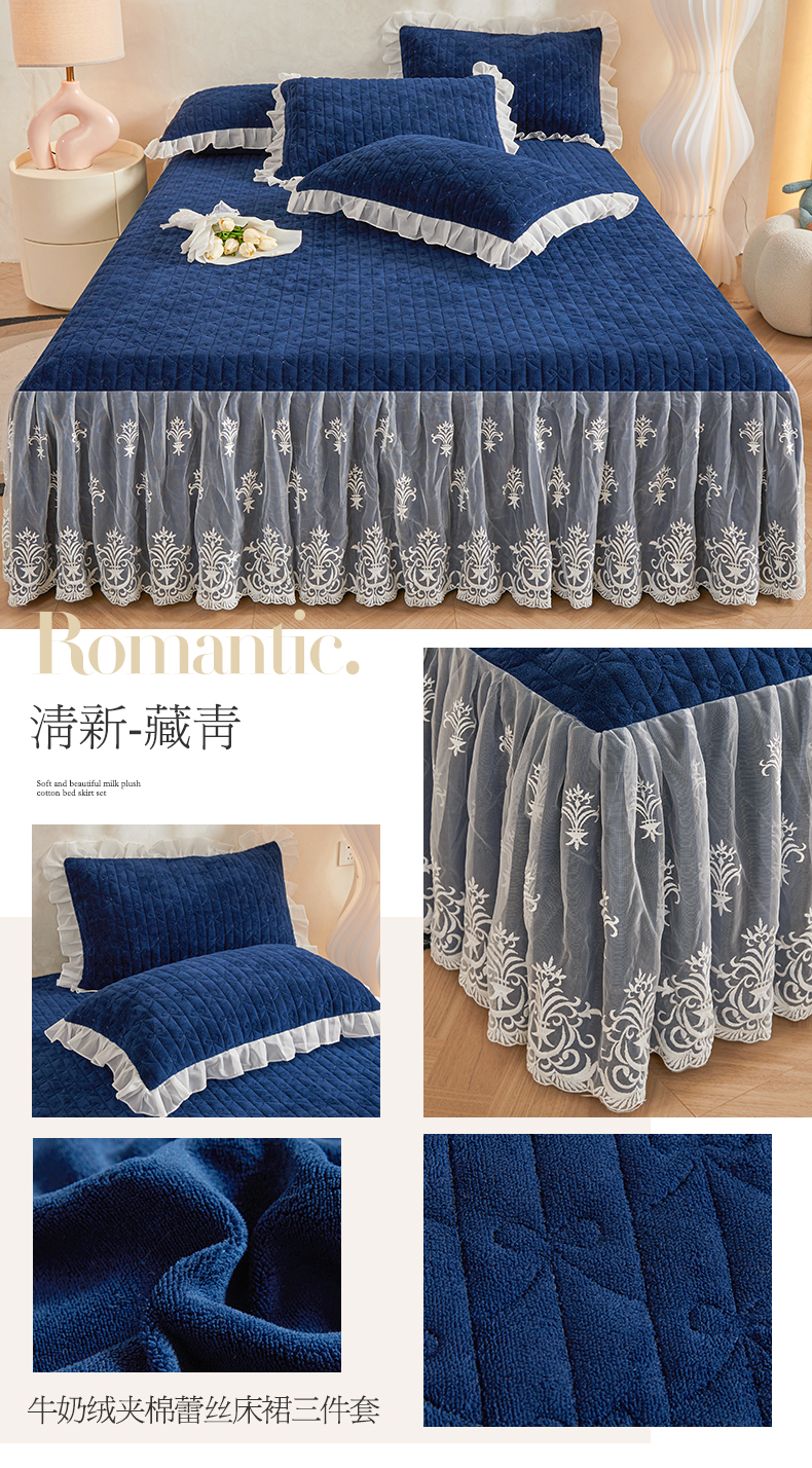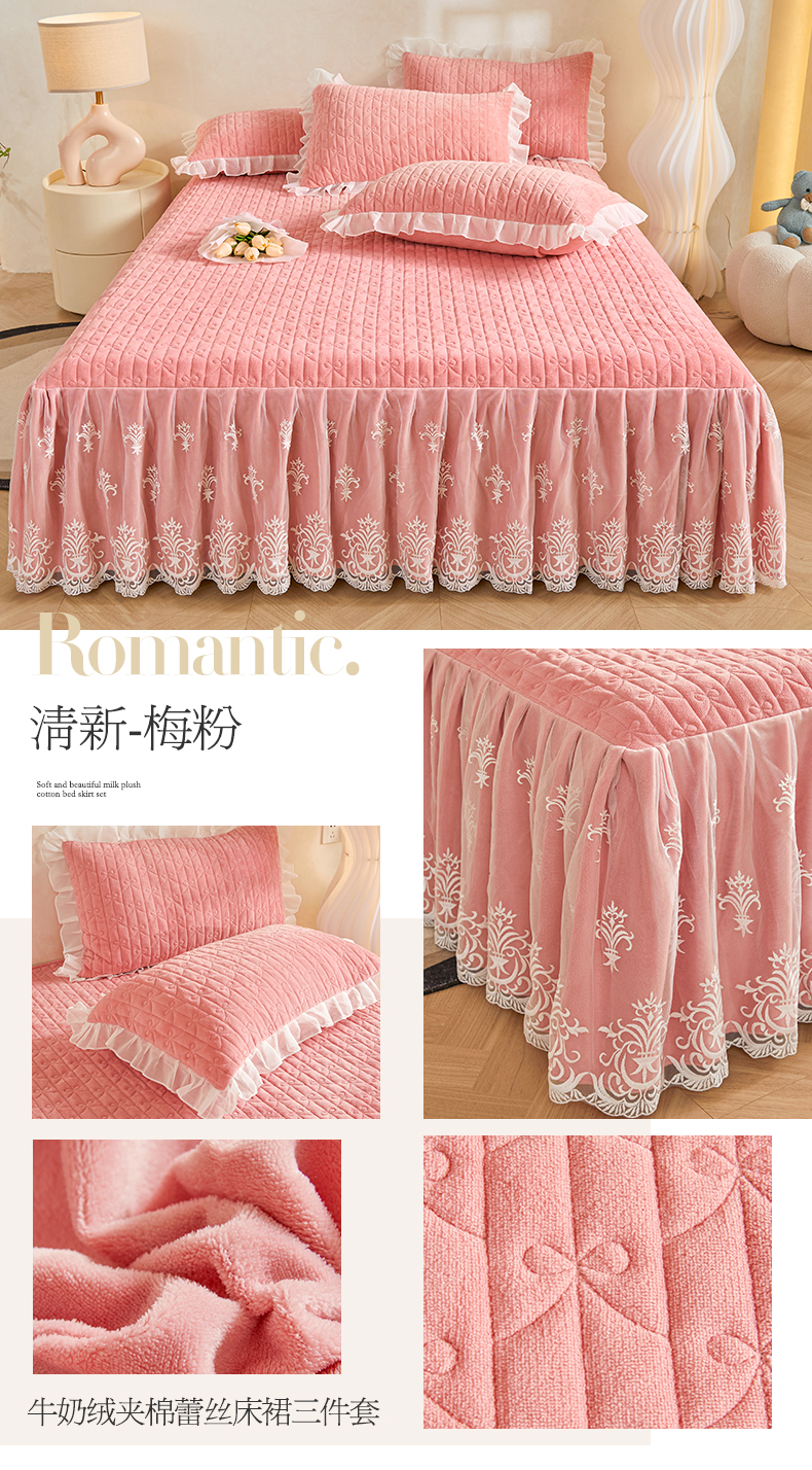 (总)虹星家纺 2023新款牛奶绒夹棉床裙套件清新系列-床裙款单床裙