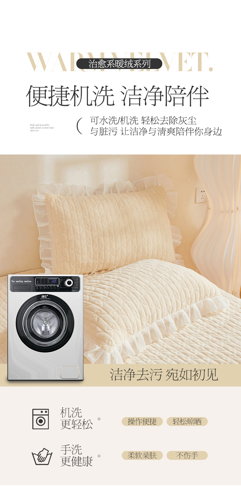 (总)虹星家纺 2025新款雕花牛奶绒床裙三件套-花溪系列,花溪-米黄,花溪-奶油黄