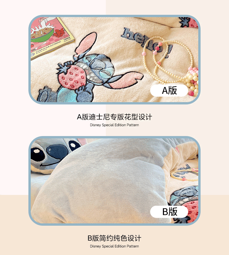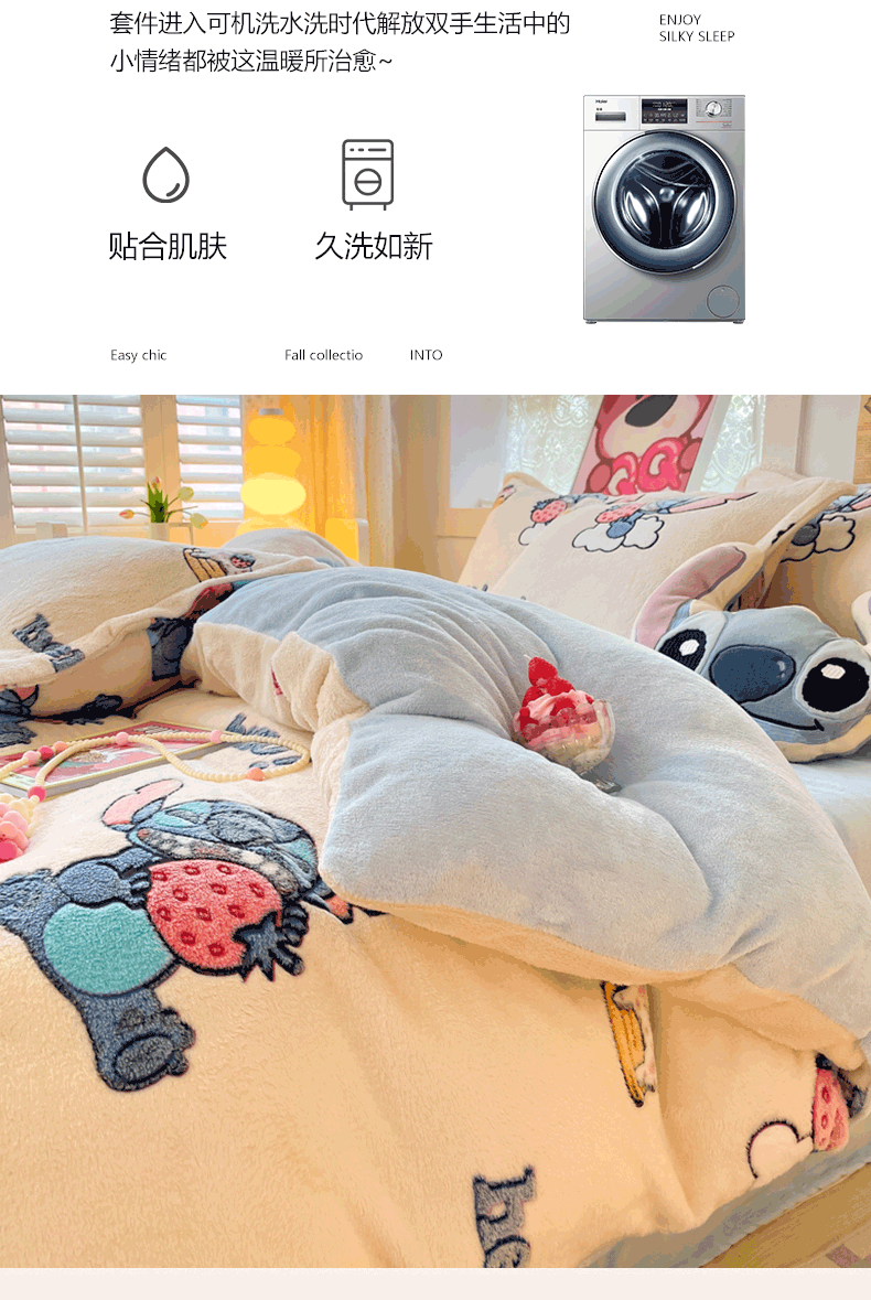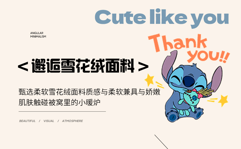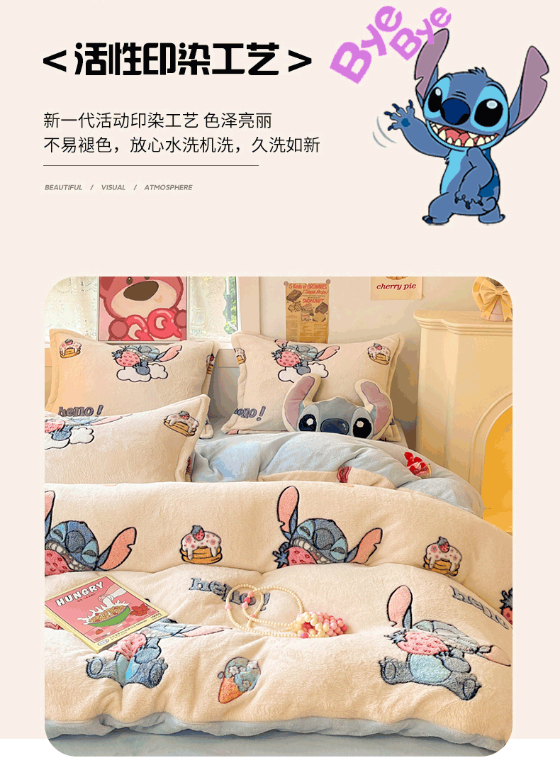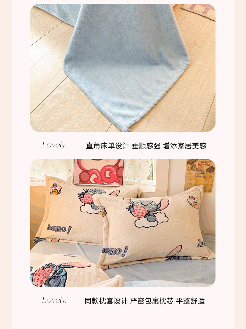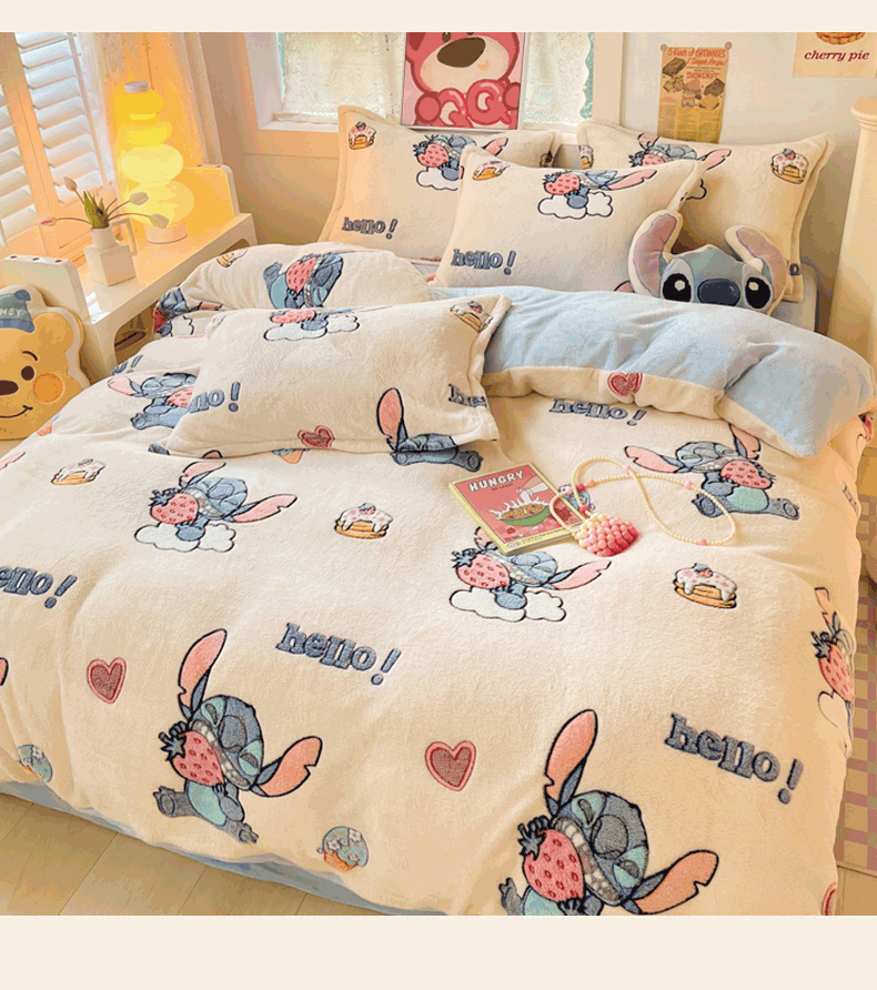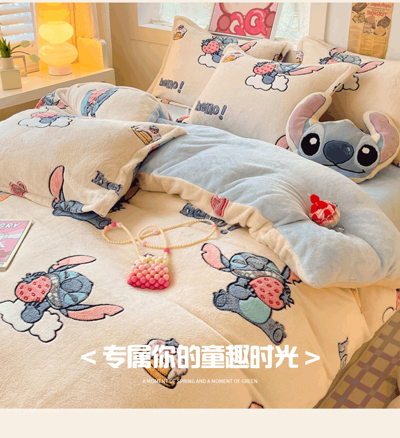 柒月家居 2023新款迪士尼雪花绒四件套 hello 史迪仔
