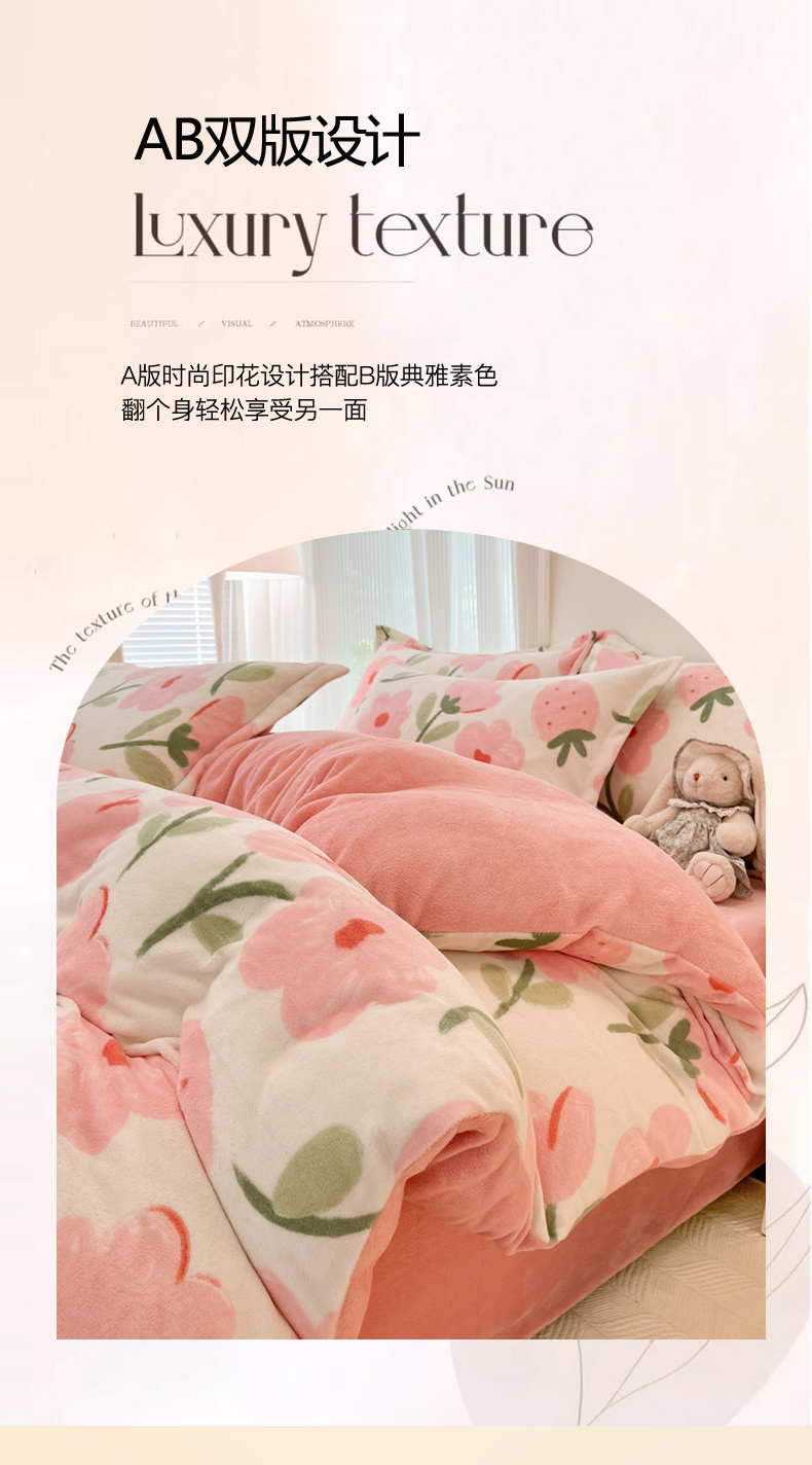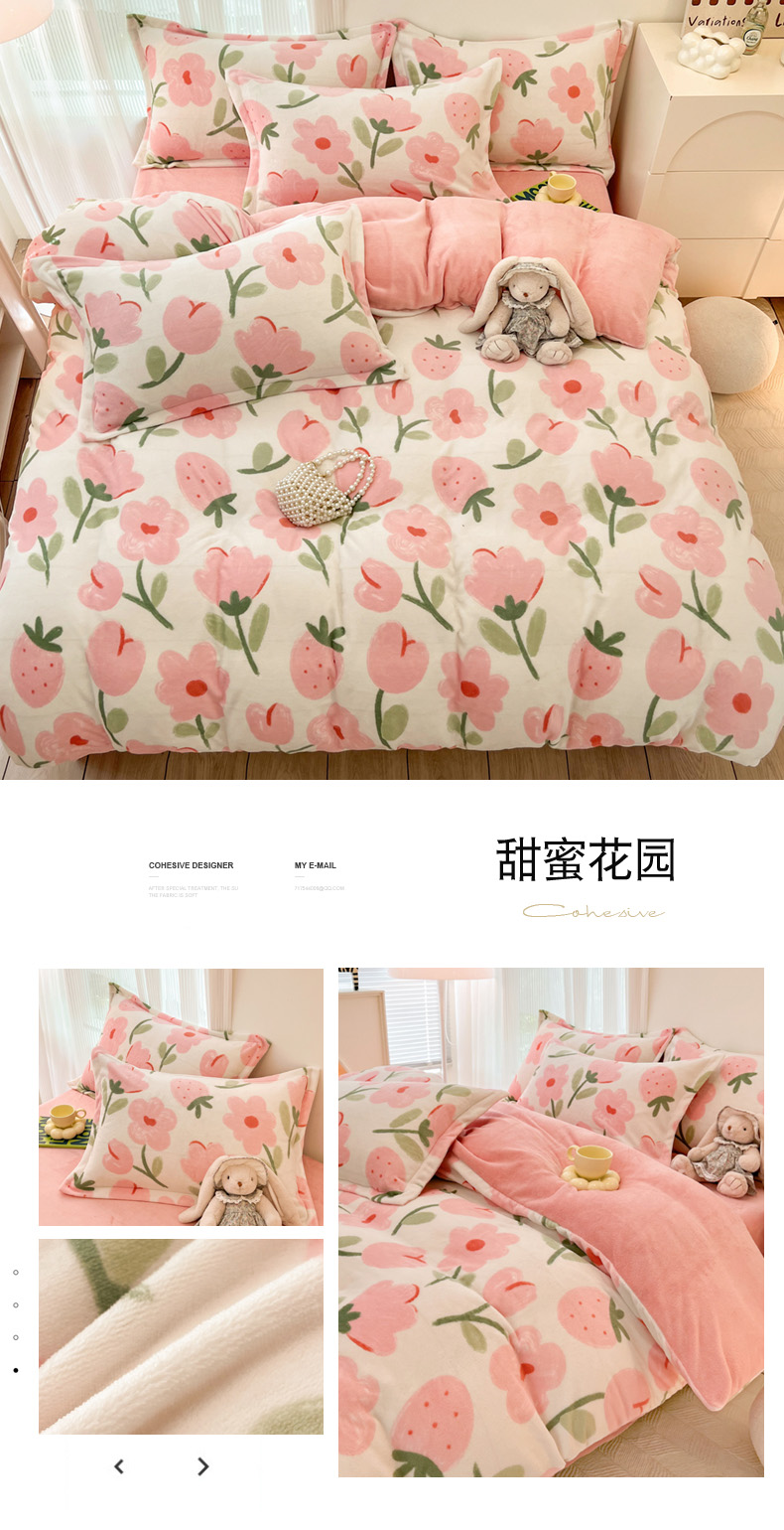 商品名称:寐居家纺 2023新款小清新牛奶绒印花被套 甜蜜花园