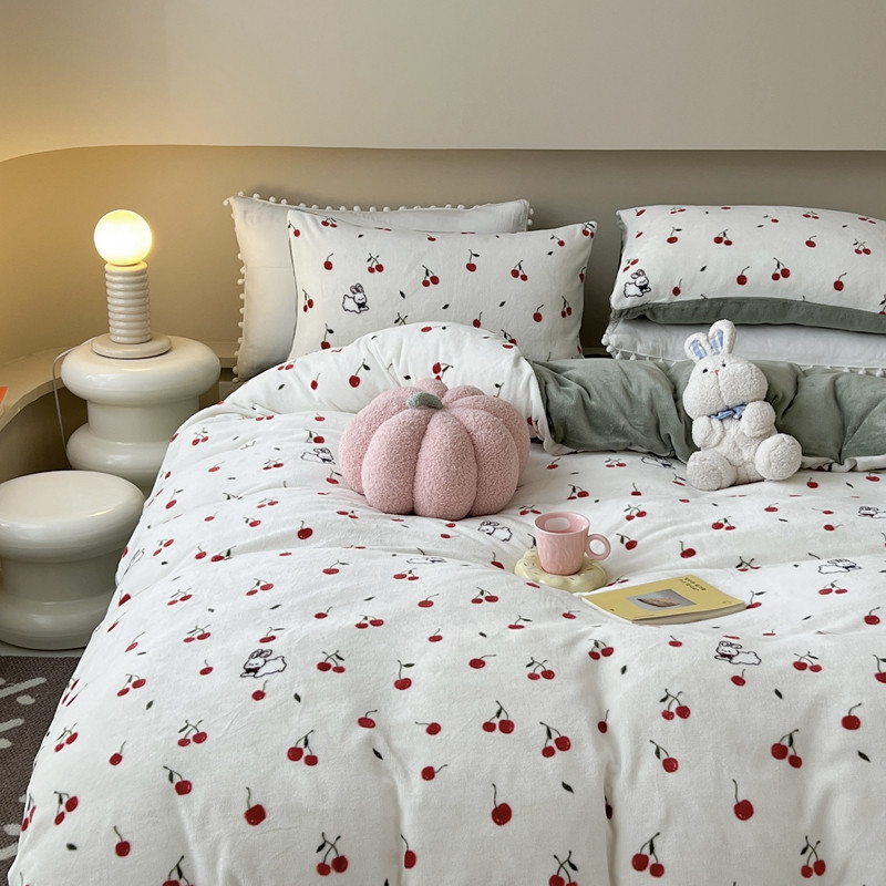当前位置: 91家纺网 > 商品网购 > 床品套件 > 四件套 > 牛奶绒四件套 > 柚子 2023新款牛奶绒四件套-小清新系列 樱桃艾米
