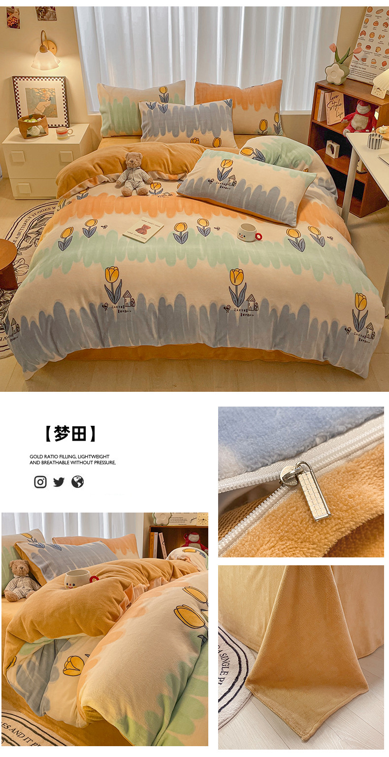 当前位置: 91家纺网 > 商品网购 > 床品套件 > 四件套 > 牛奶绒四件套 > 大渔生活 2024新款牛奶绒印花系列四件套 梦田