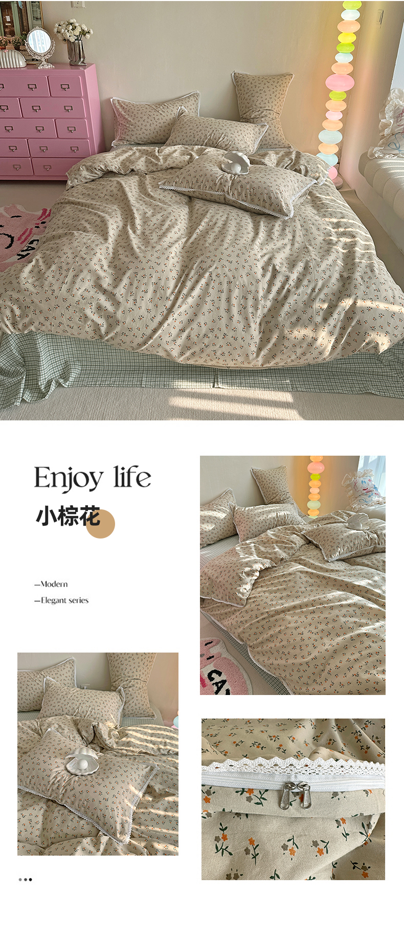 千朵 2023新款全棉水洗带边四件套 小棕花