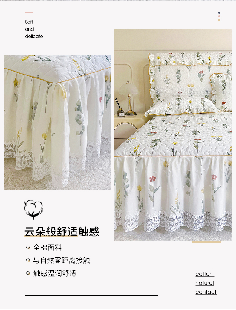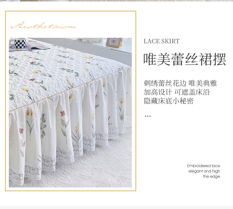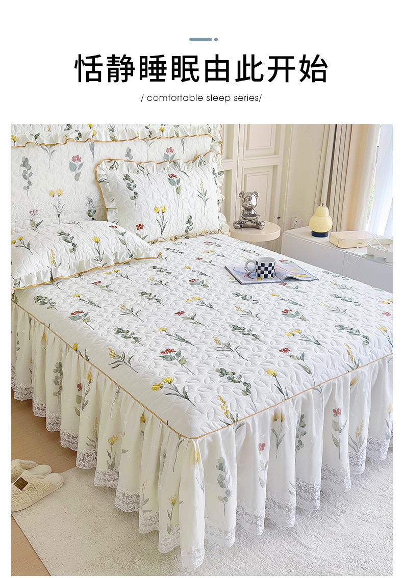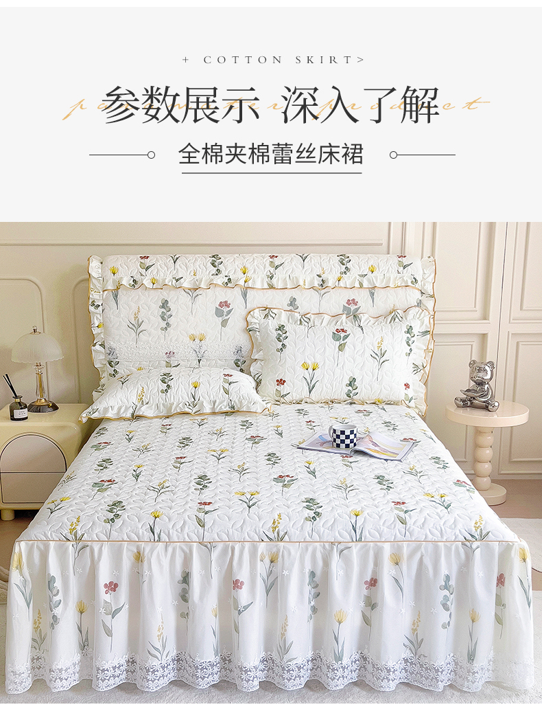 十个点 2024新款印花夹棉蕾丝单床裙-玲珑 静香