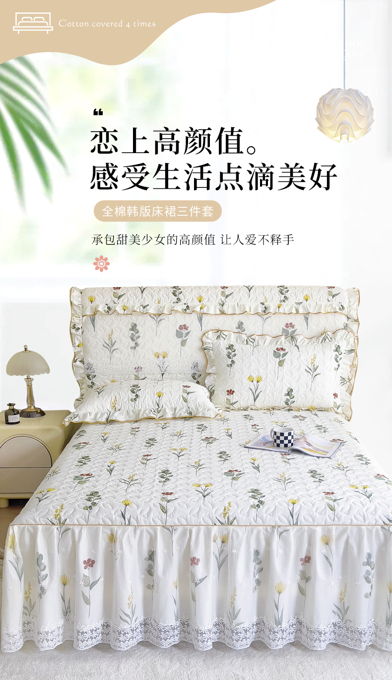 (总)十个点家纺 2025新款加厚磨毛木棉床裙三件套-绫罗系列,爱意萌萌,贝贝熊,格桑花,海棠花,蝴蝶兔,花千骨,米兰,木棉花,山茶花,同心结,心相印,心愿-米