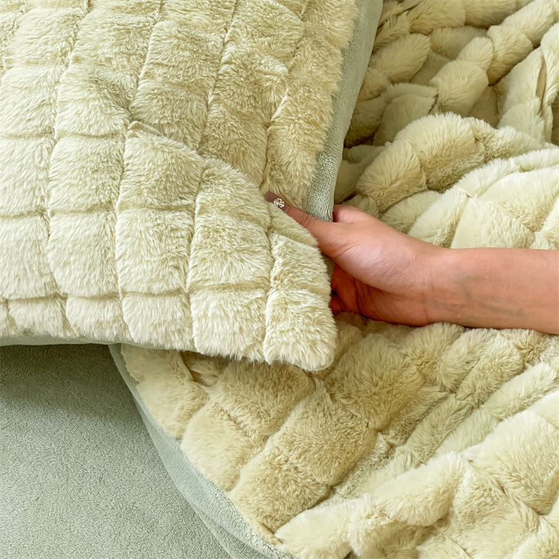顾里 2023新款小贵妇仿皮草兔毛绒套件 方格绿