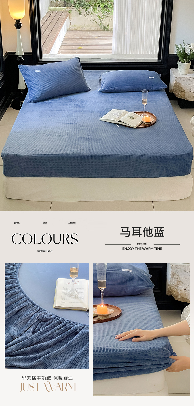 商品名称:时光里 2023新款全消光华夫格绒-单床笠 马耳他蓝