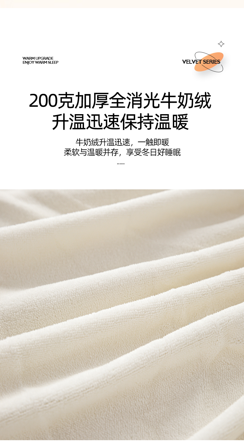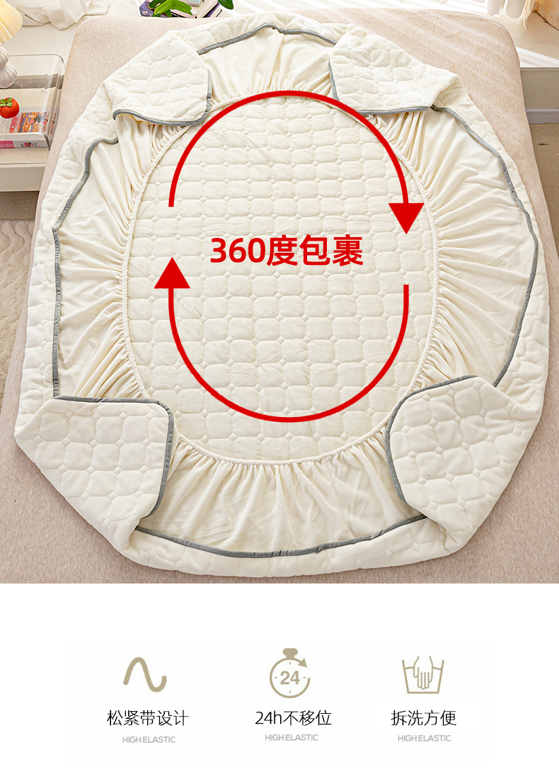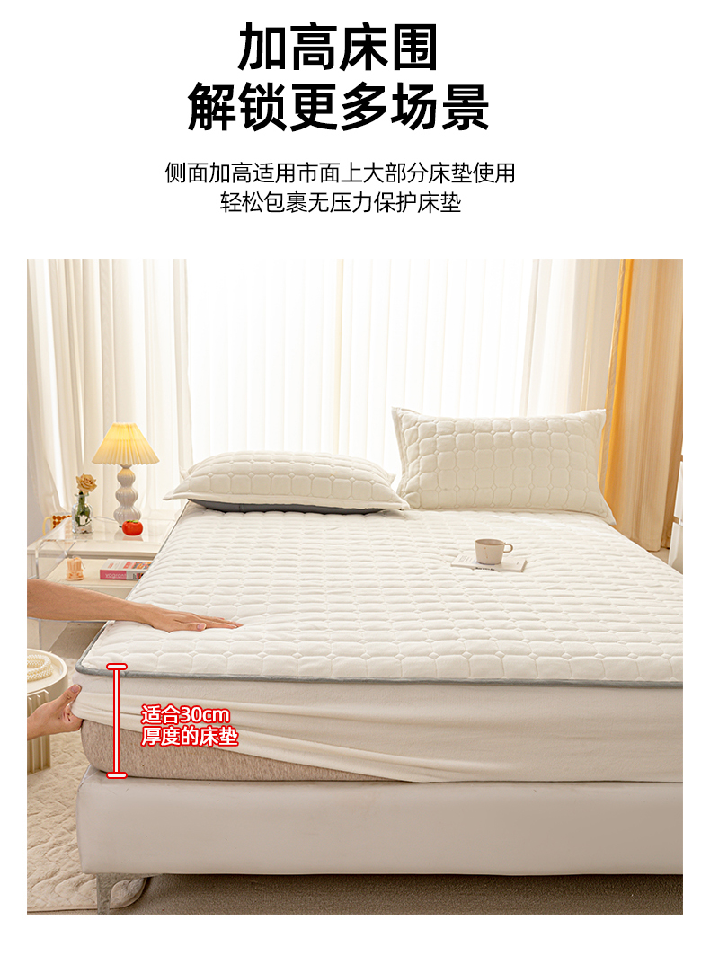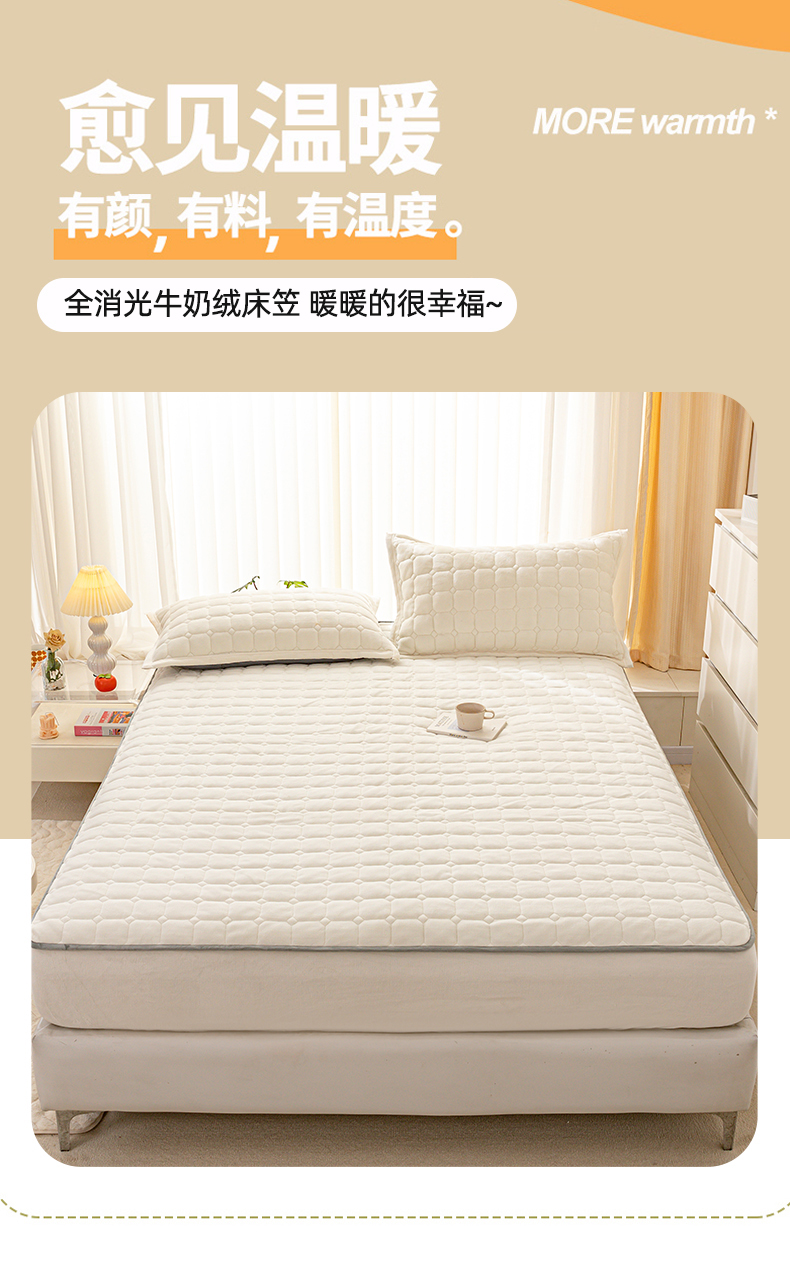 商品名称:凡客家居 2024新款加厚牛奶绒夹棉床笠 米白