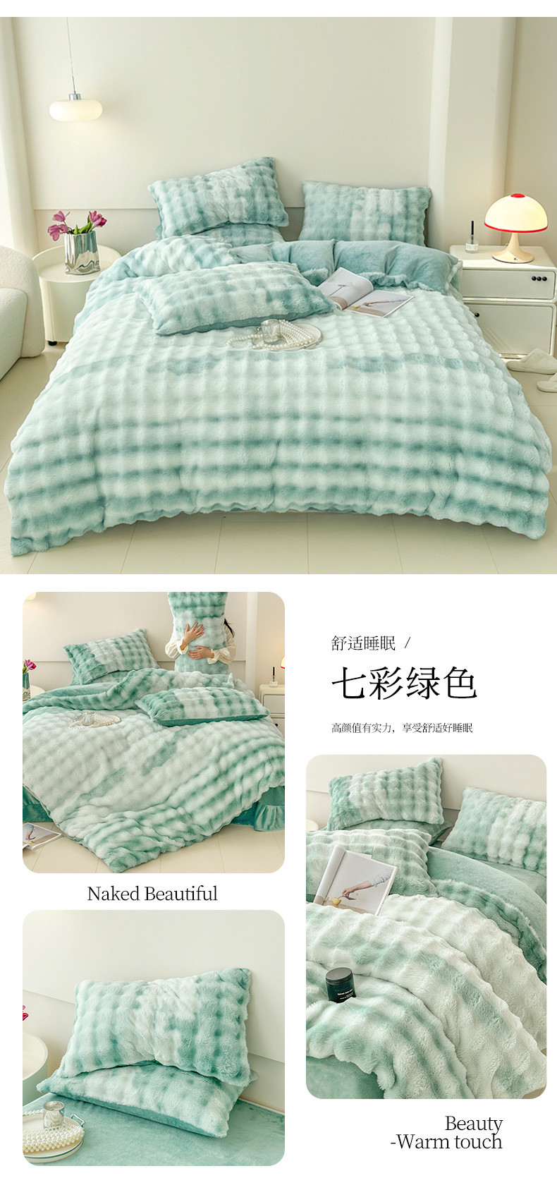 商品名称:一比一 2023新款兔毛七彩印花牛奶绒四件套 七彩绿色