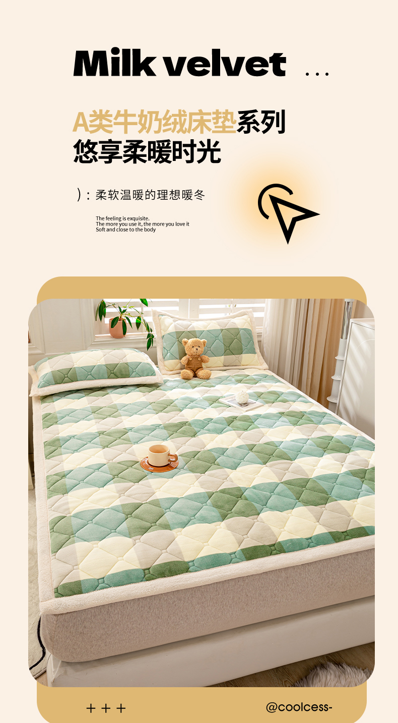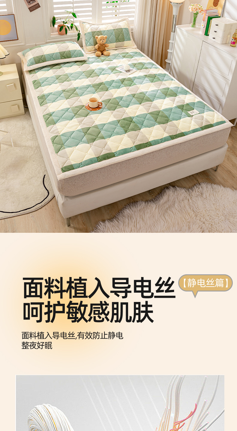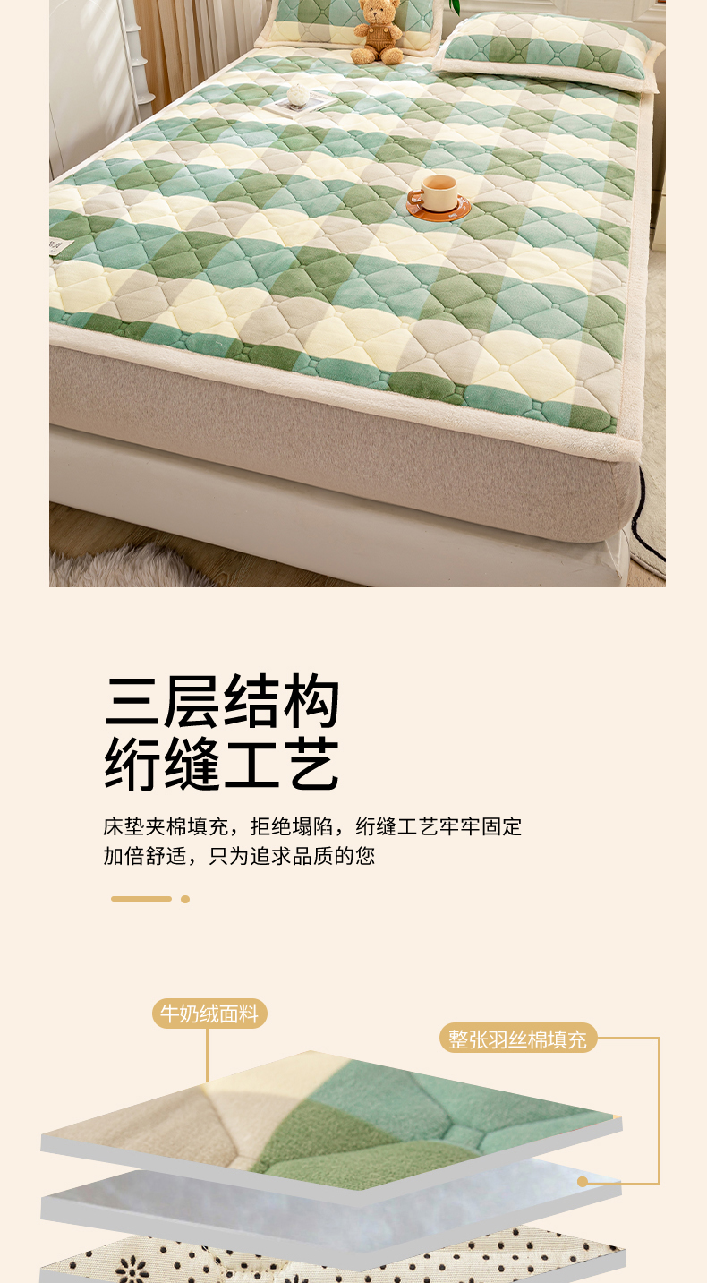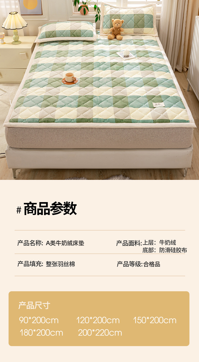当前位置: 91家纺网 > 商品网购 > 床垫/床褥 > 普通床垫 > 慕木家纺 2025新款A类牛奶绒纯色印花加厚保暖床垫护垫床褥子 绿大格