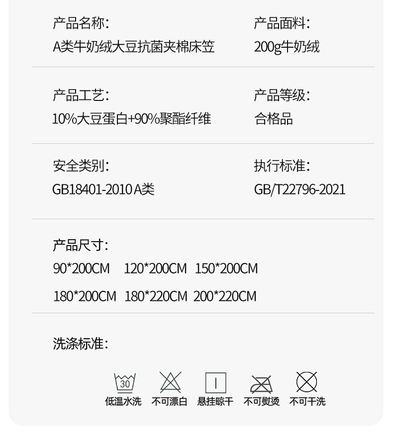180*220三件套(床笠+两个枕套) | ¥76.00 |