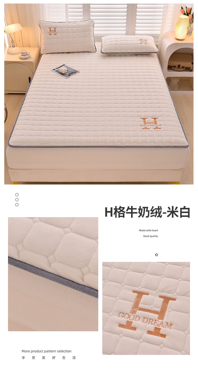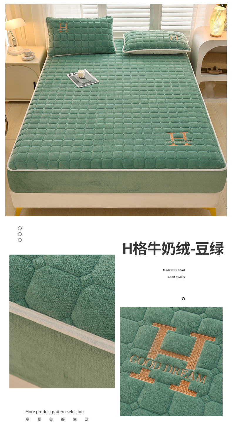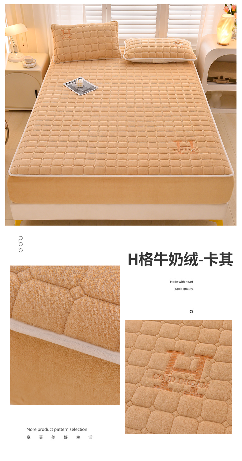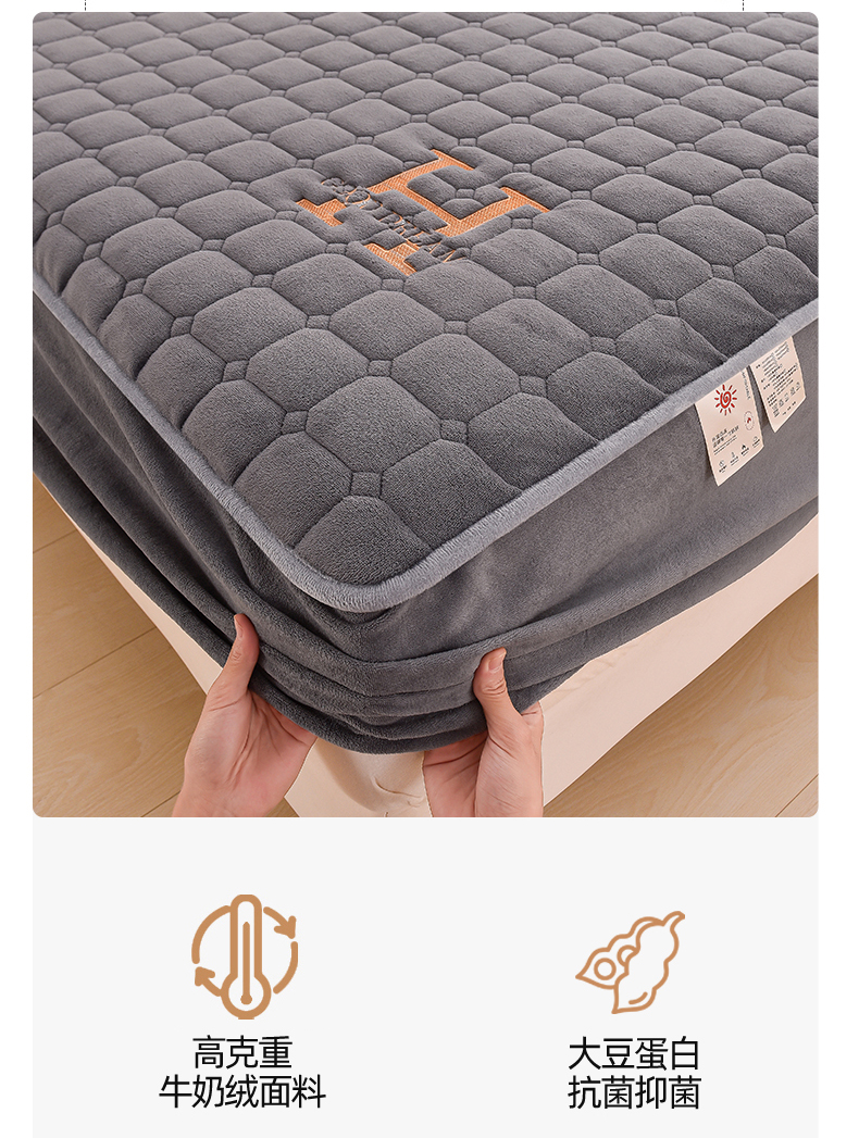 商品名称:总X猫先生2024冬季A类高克重牛奶绒大豆抗菌刺绣夹棉床笠爱玛H格系列