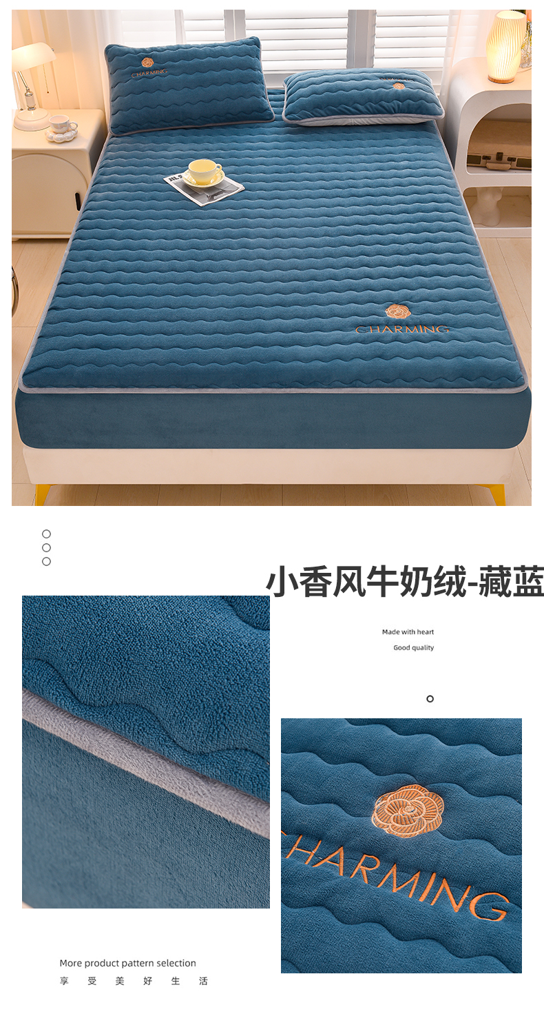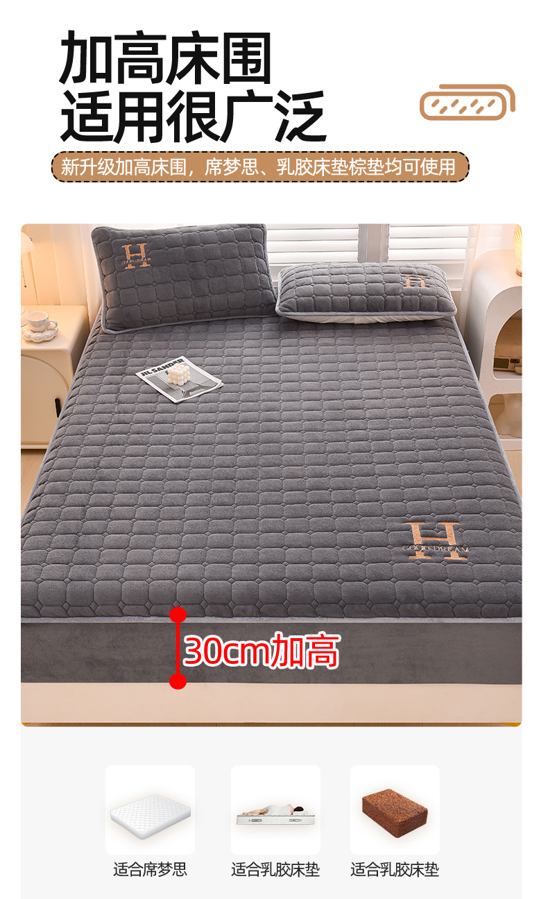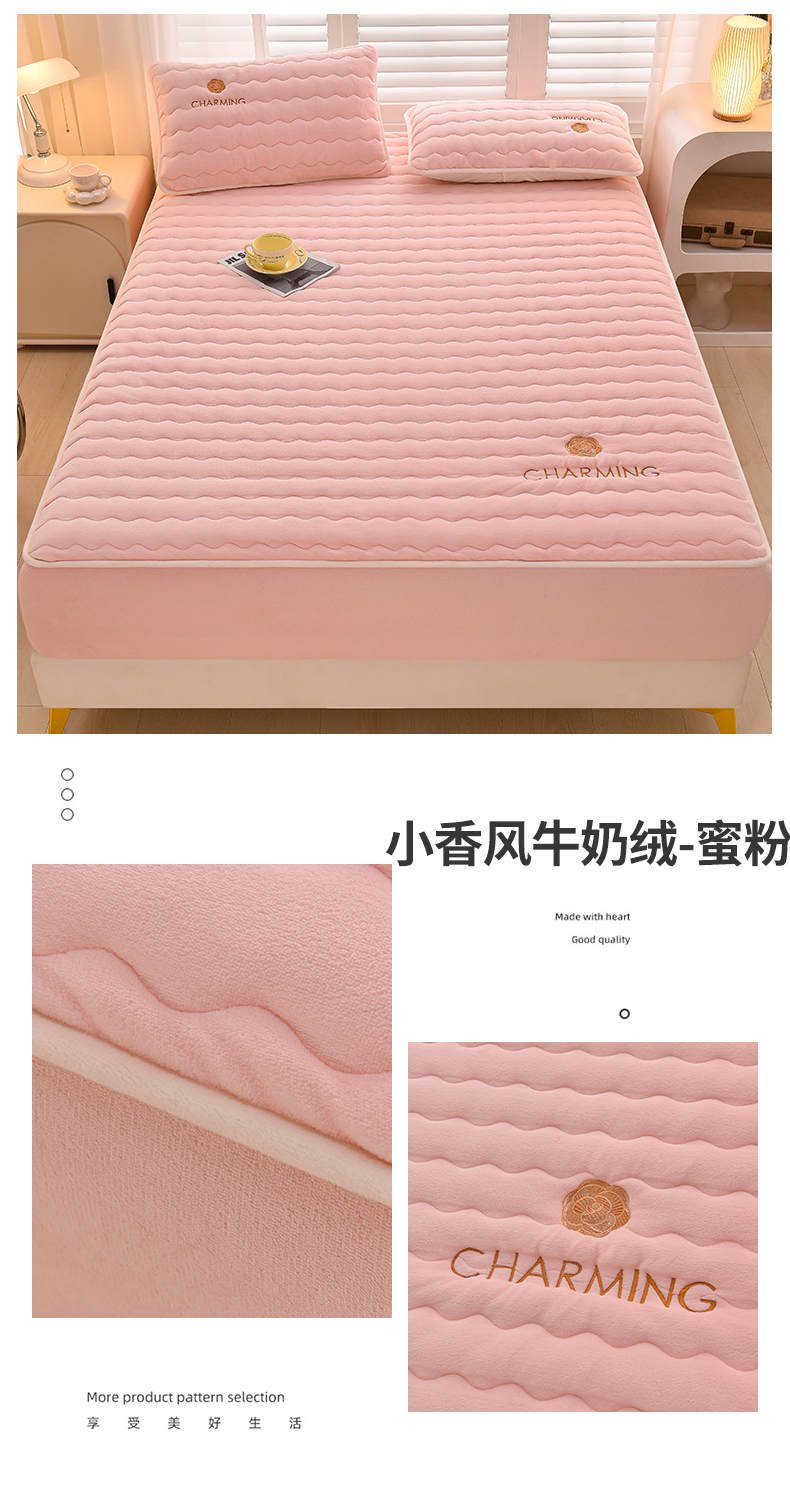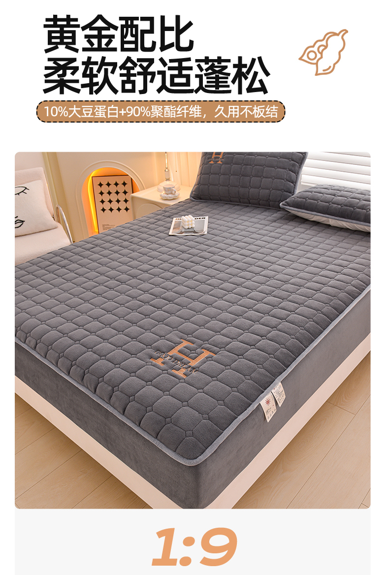 商品名称:总X猫先生2024冬季A类高克重牛奶绒大豆抗菌刺绣夹棉床笠爱玛H格系列