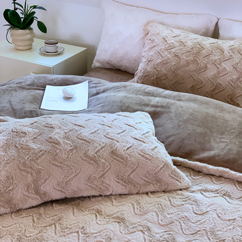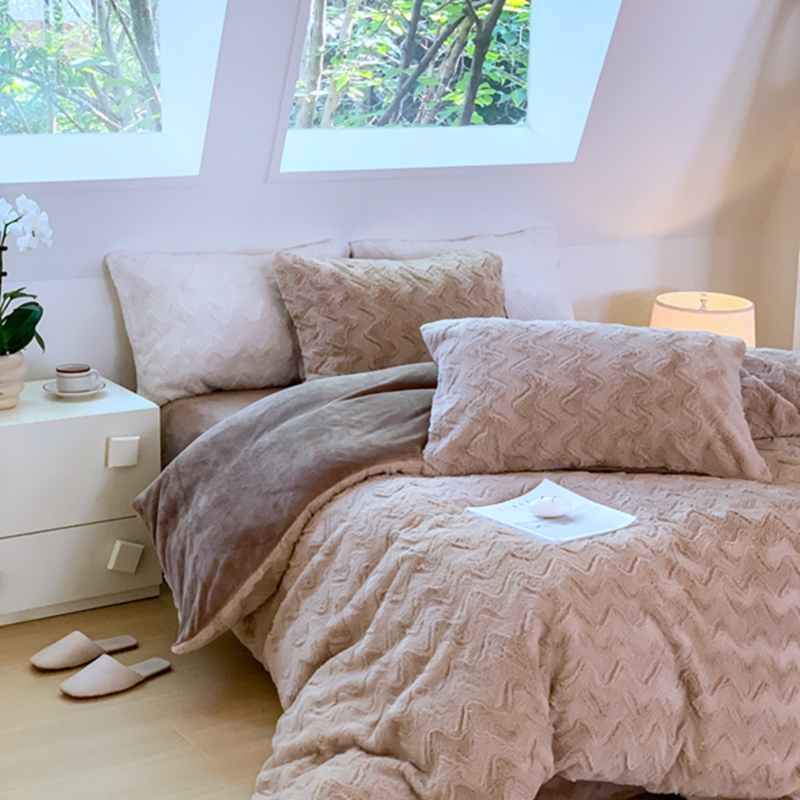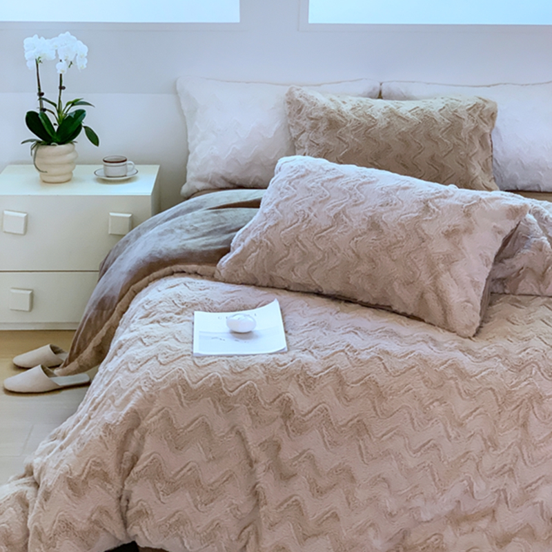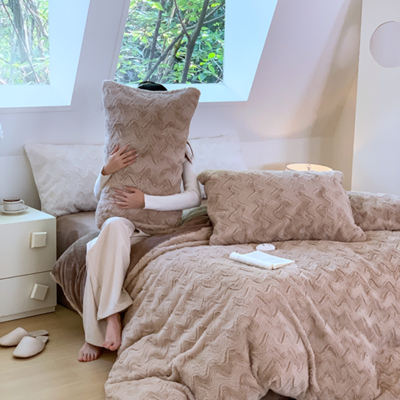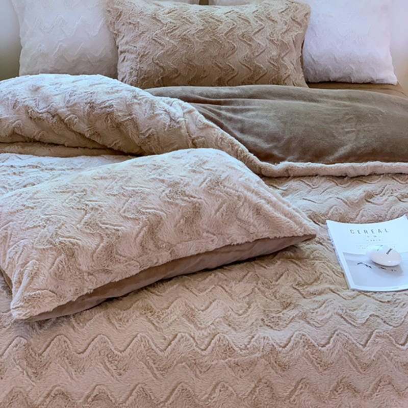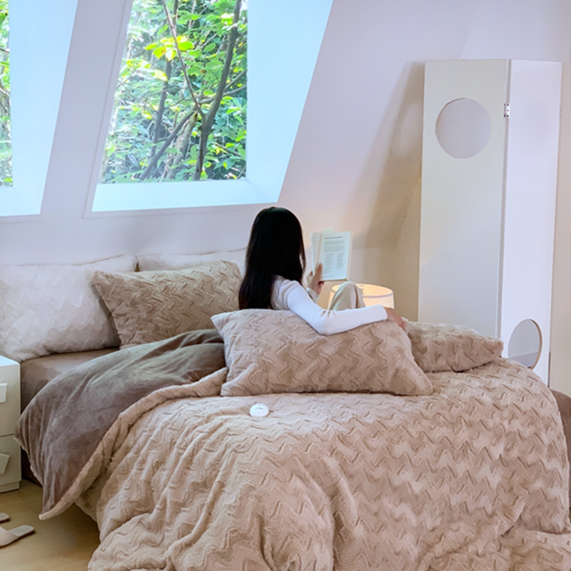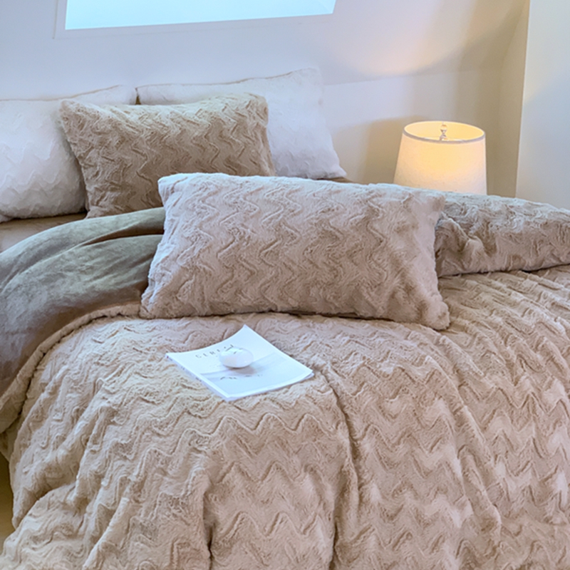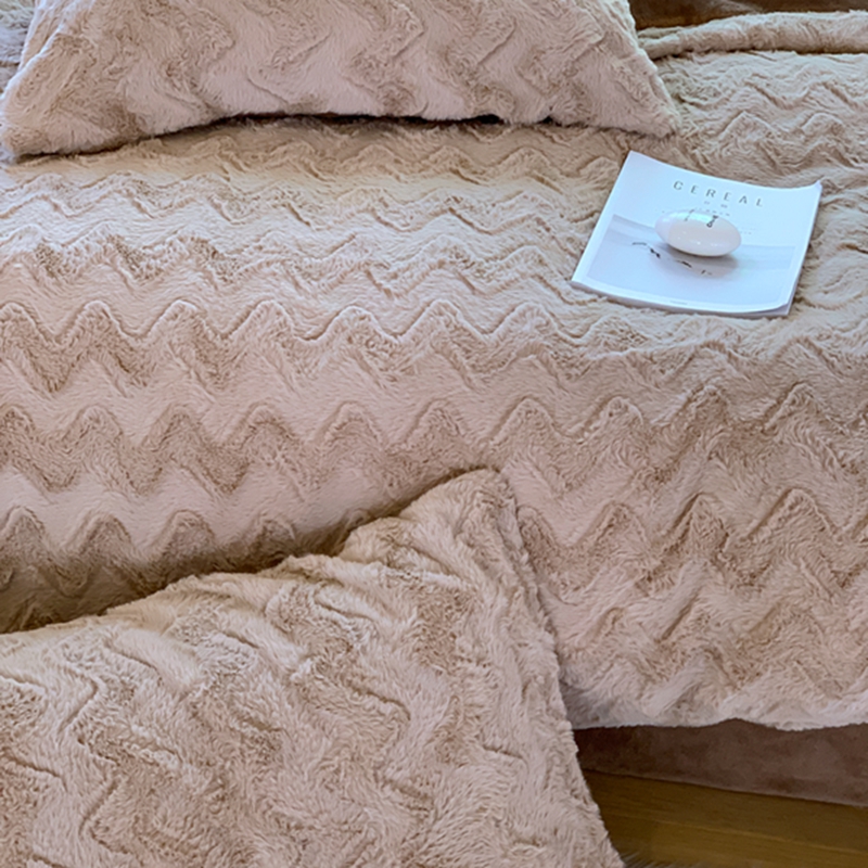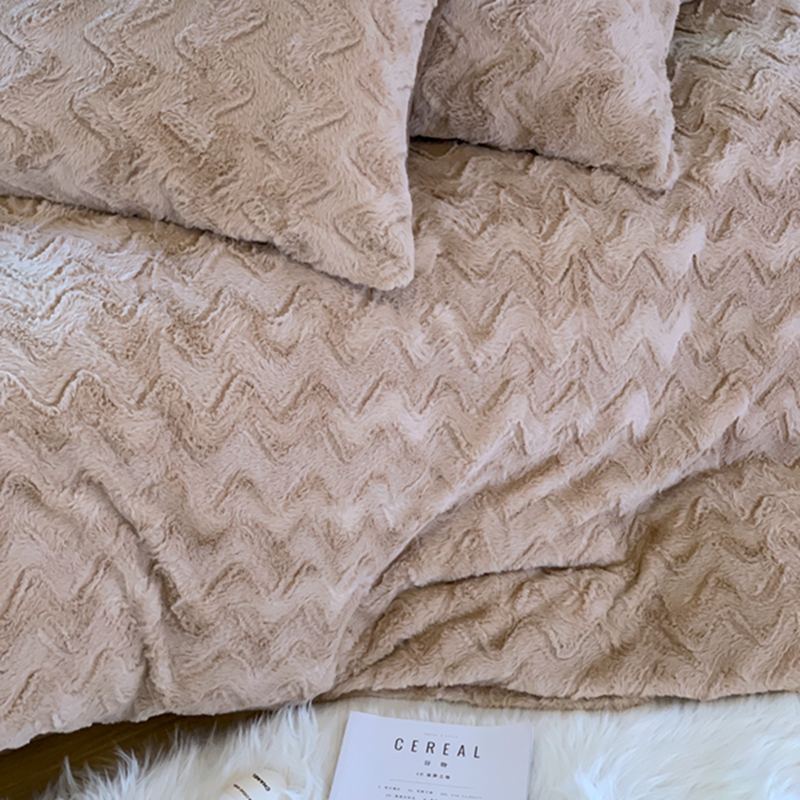 昔可家纺 2023兔兔绒四件套 咖色波纹