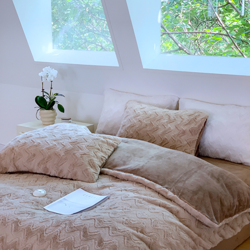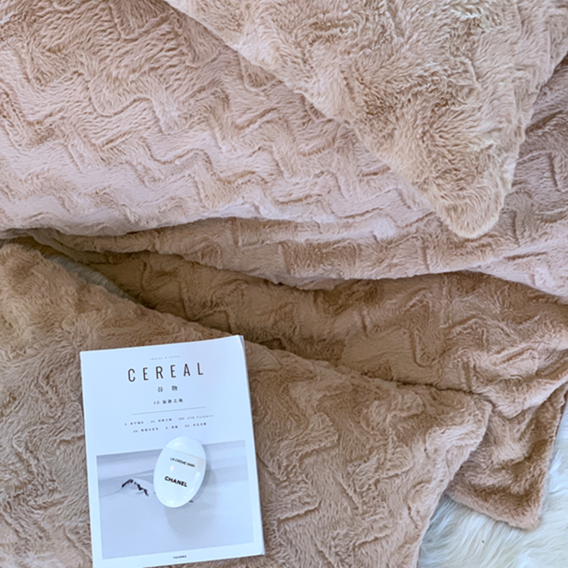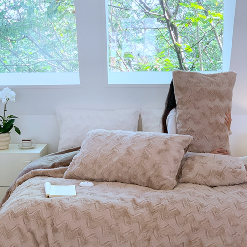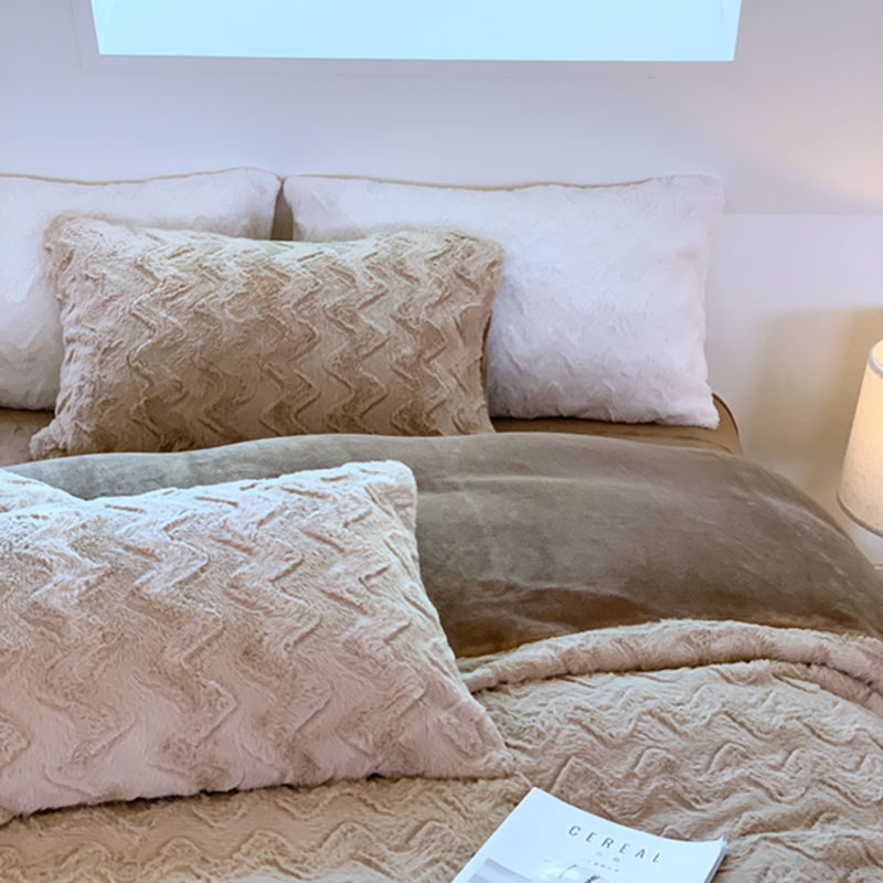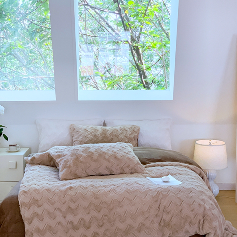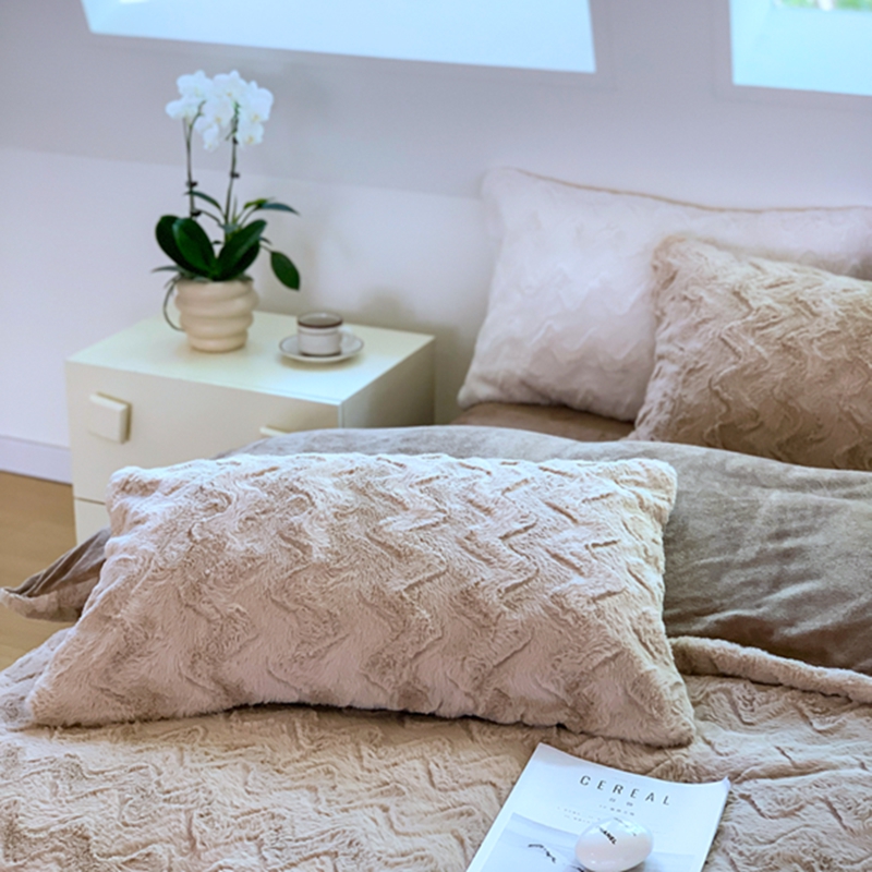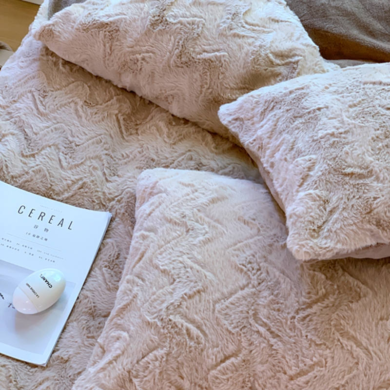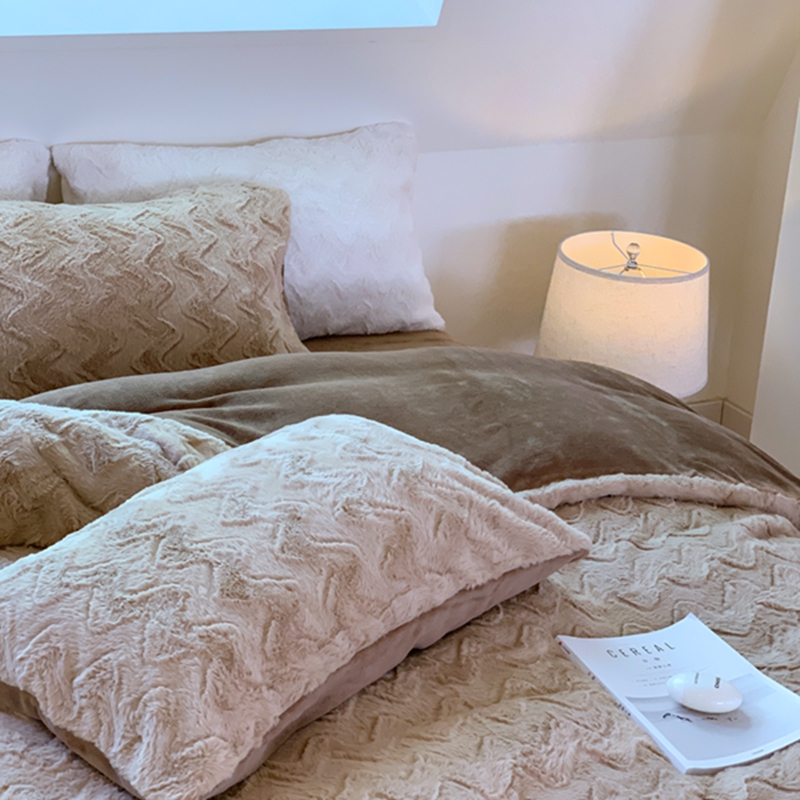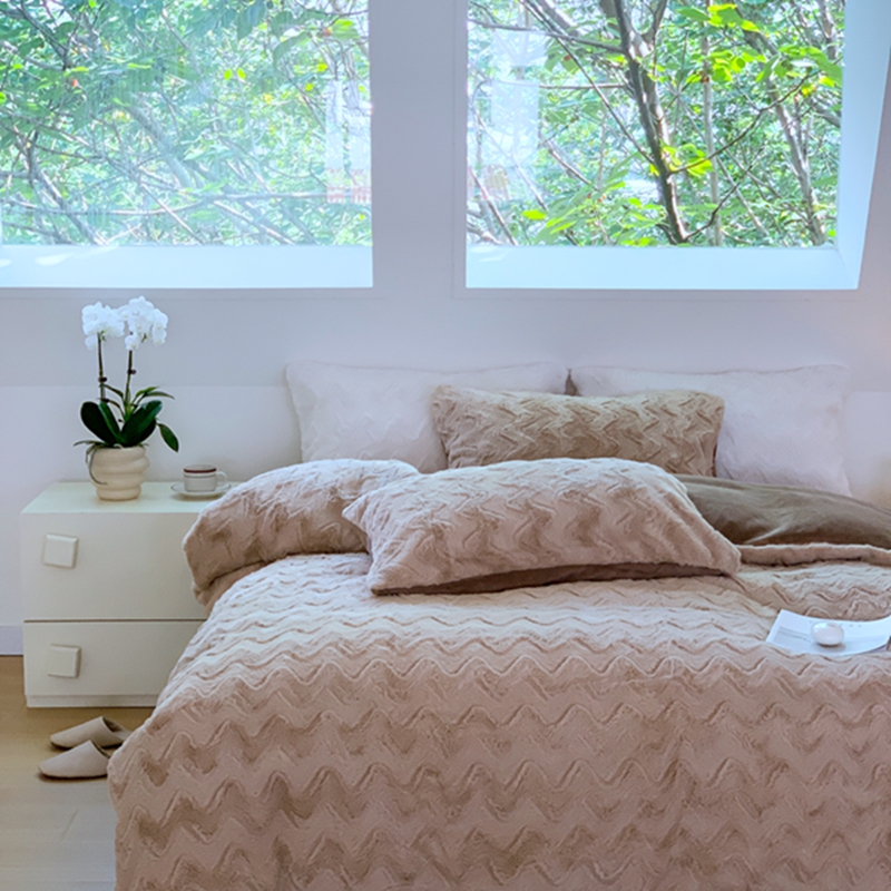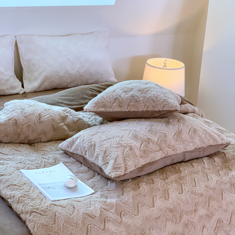 昔可家纺 2023兔兔绒四件套 咖色波纹