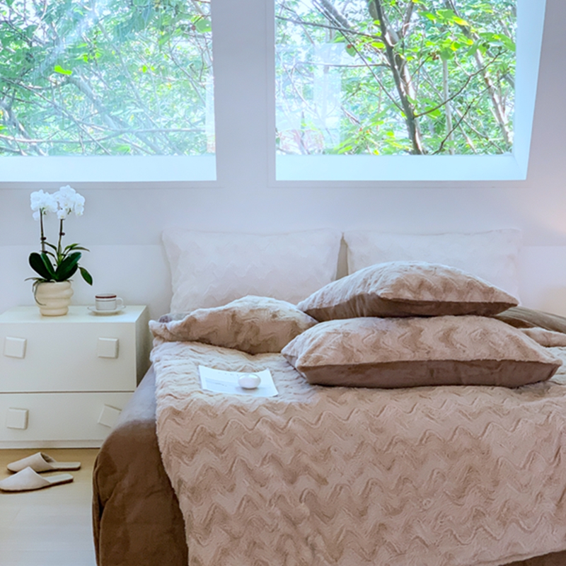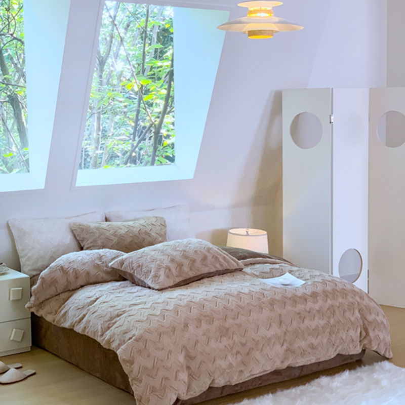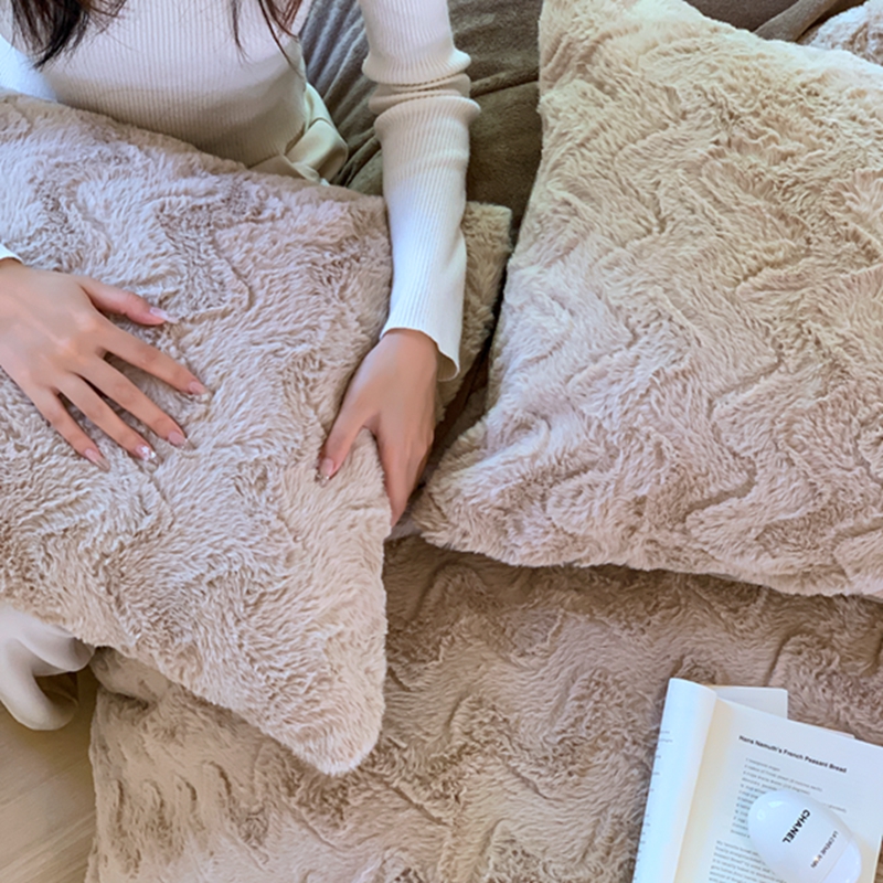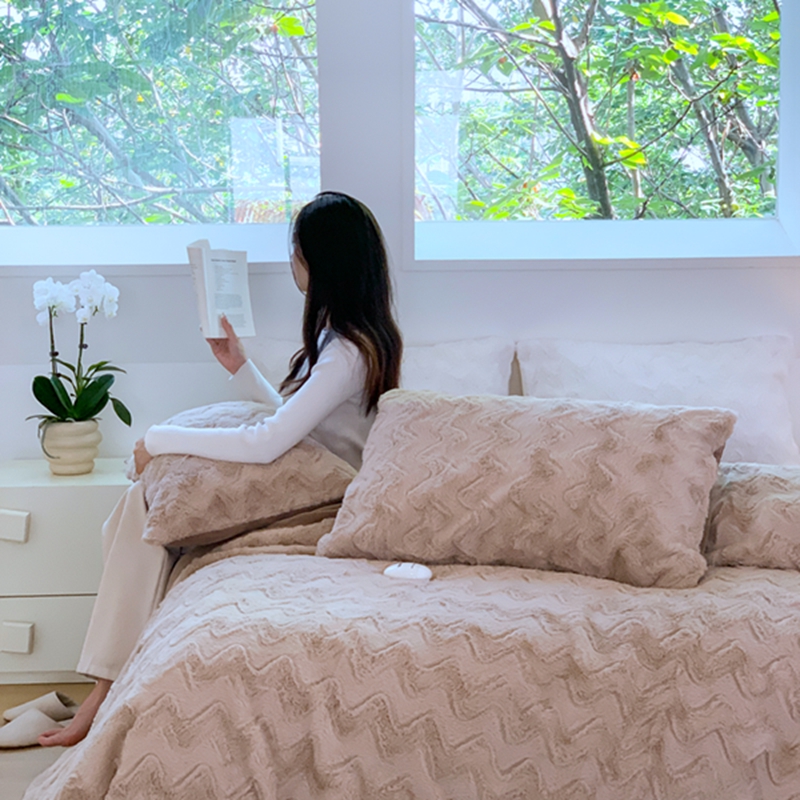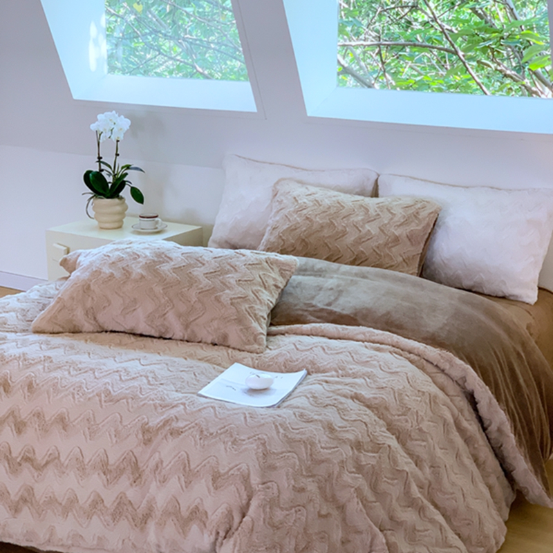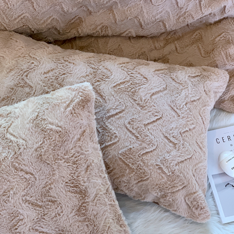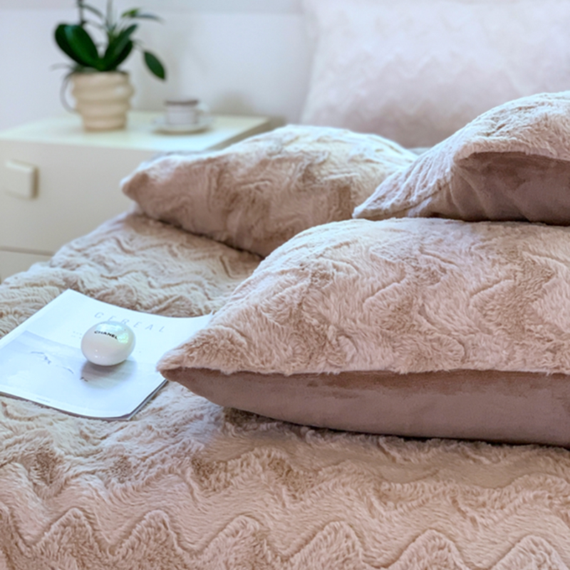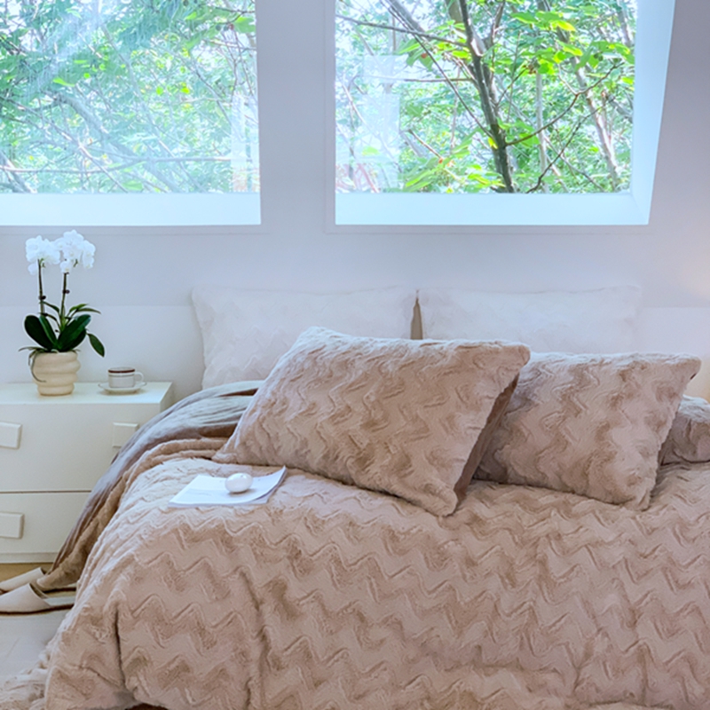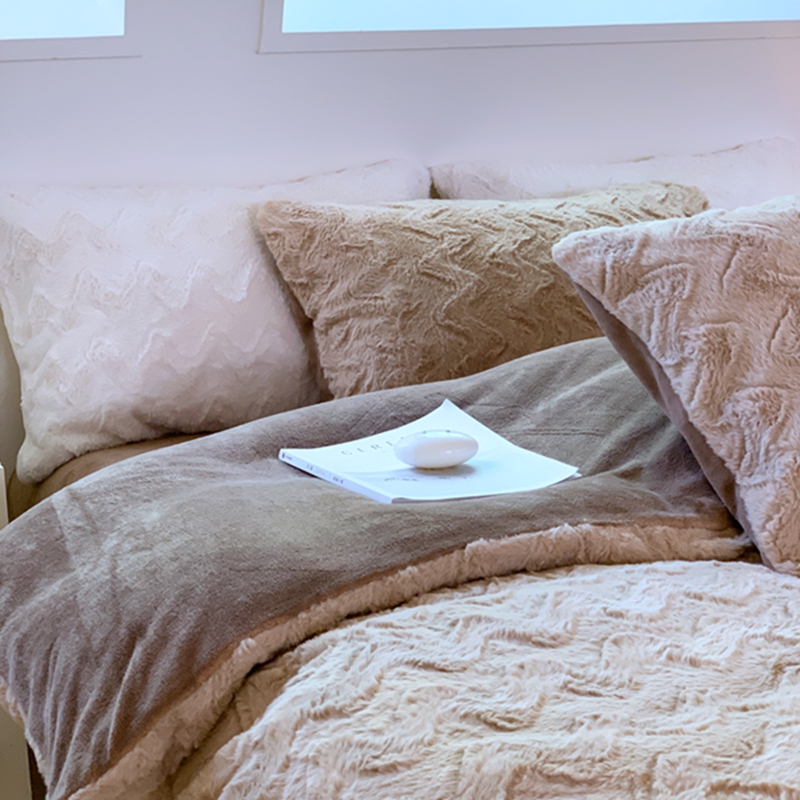 昔可家纺 2023兔兔绒四件套 咖色波纹