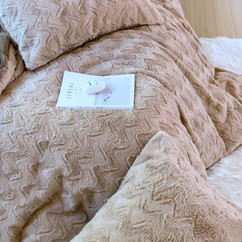 商品名称:昔可家纺 2023兔兔绒四件套 咖色波纹