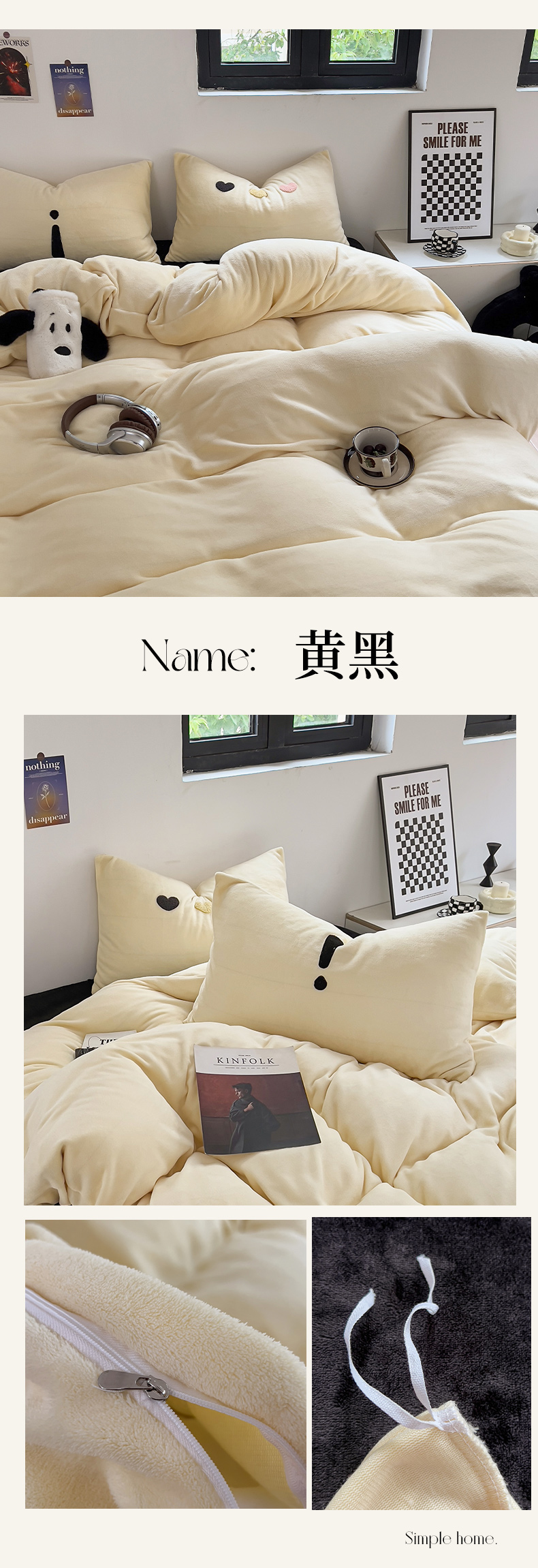 商品名称:山茶家纺 2023新款黑色系毛巾绣纯色牛奶绒四件套 黑色系-黄黑