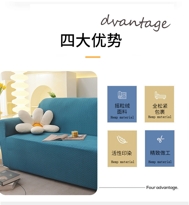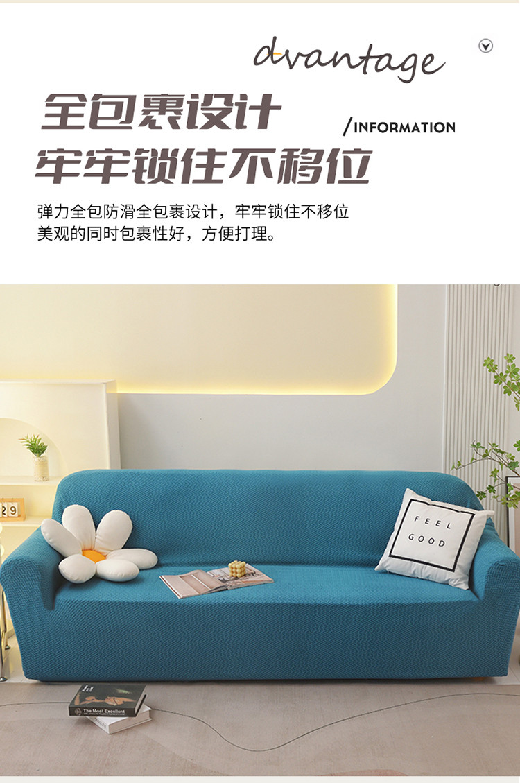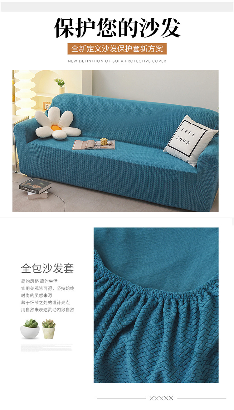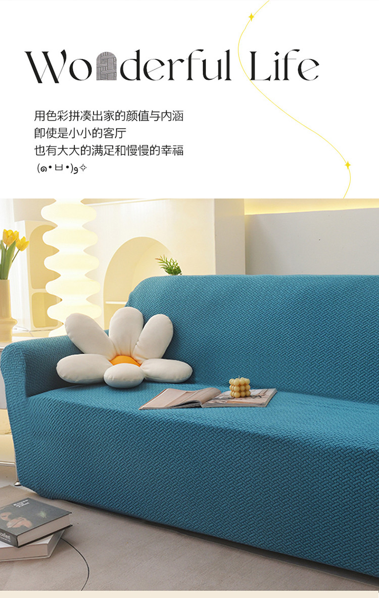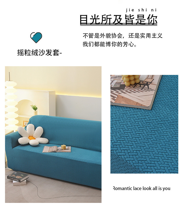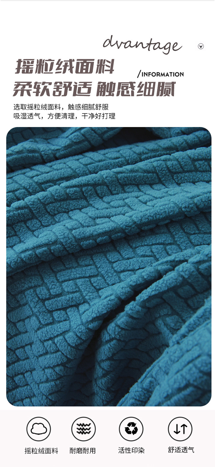 商品名称:天下布艺 2023新款摇粒绒沙发套斜格 斜格孔雀蓝