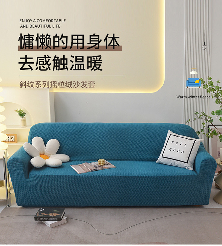 天下布艺 2023新款摇粒绒沙发套斜格 斜格孔雀蓝
