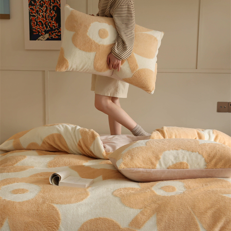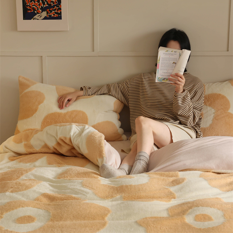 棉眠 2023新款牛奶绒向阳系列四件套 向阳-米黄