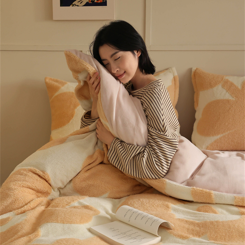 商品名称:棉眠 2023新款牛奶绒向阳系列四件套 向阳-米黄
