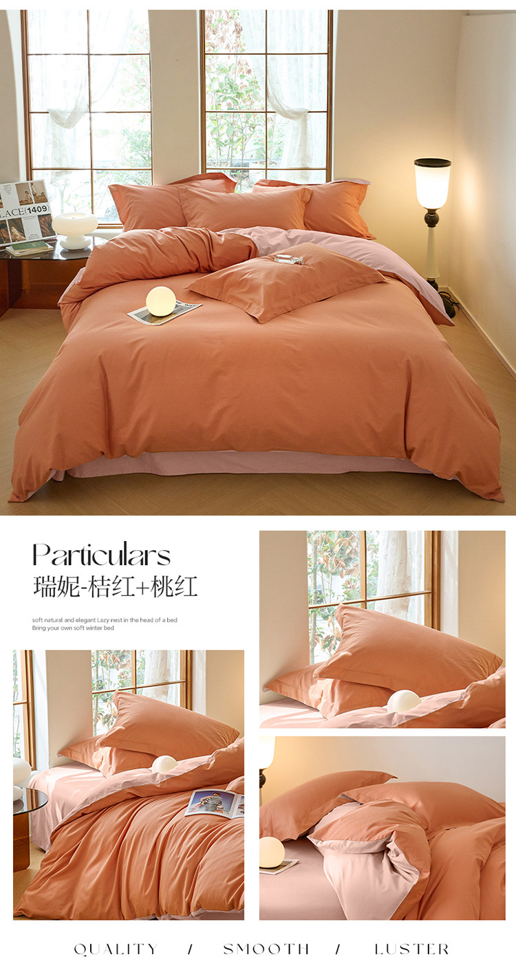 商品名称:秀色2025高端50支加厚陶瓷磨毛全棉四件套奶油风瑞妮桔红+桃红