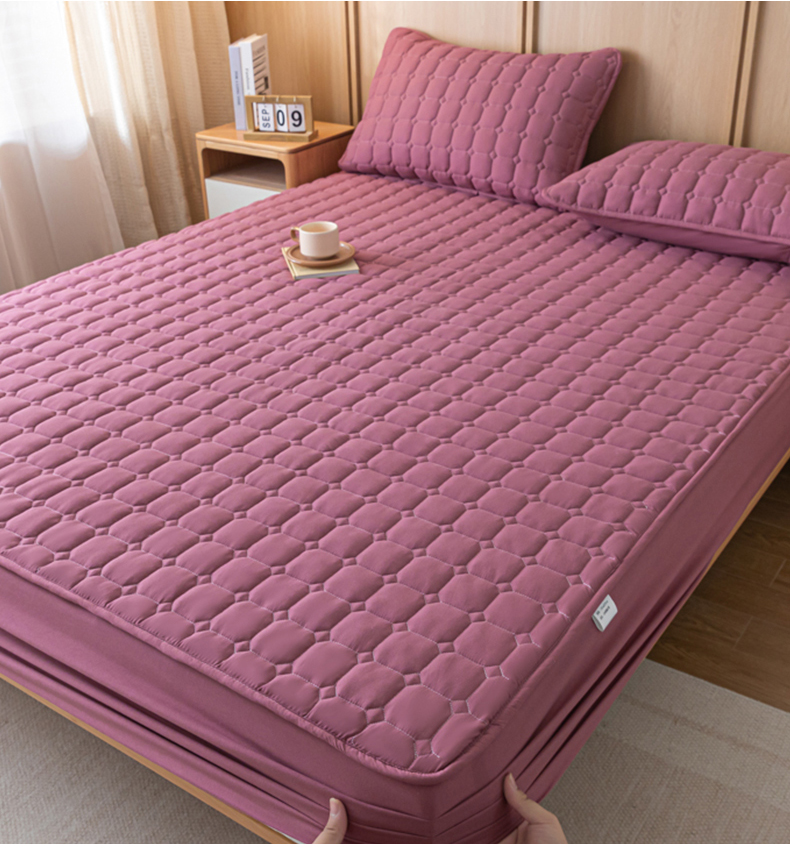 宇淳 2026跨境外贸水洗棉夹棉单件床签床垫保护套四季通用防滑床罩梦思床垫保护罩三件套非全棉 深豆沙
