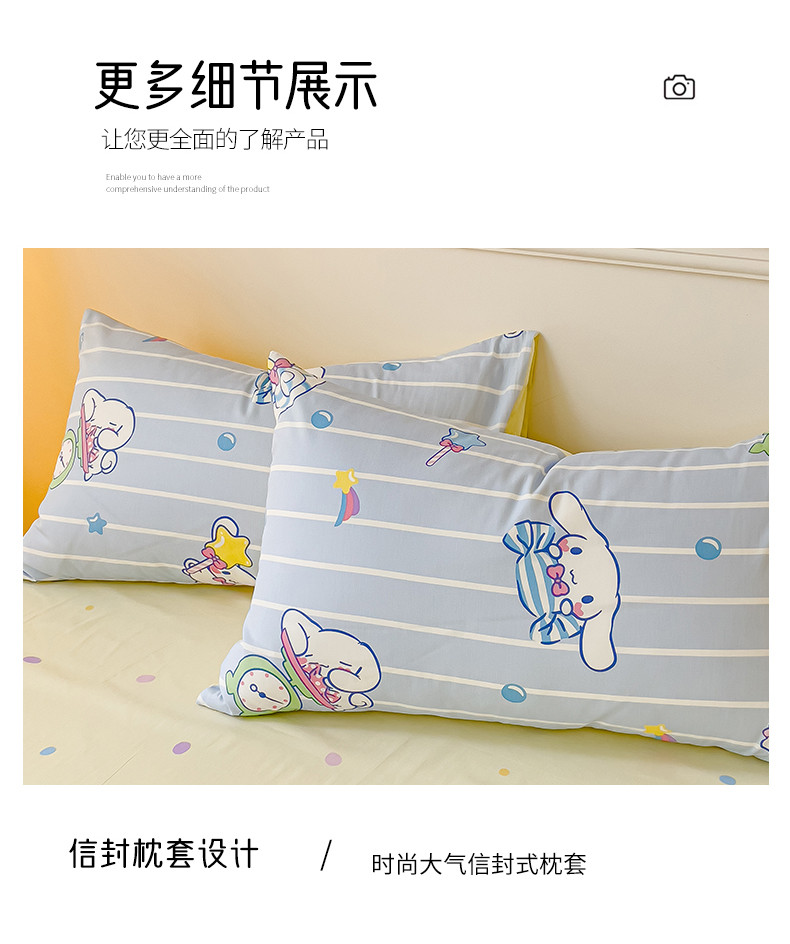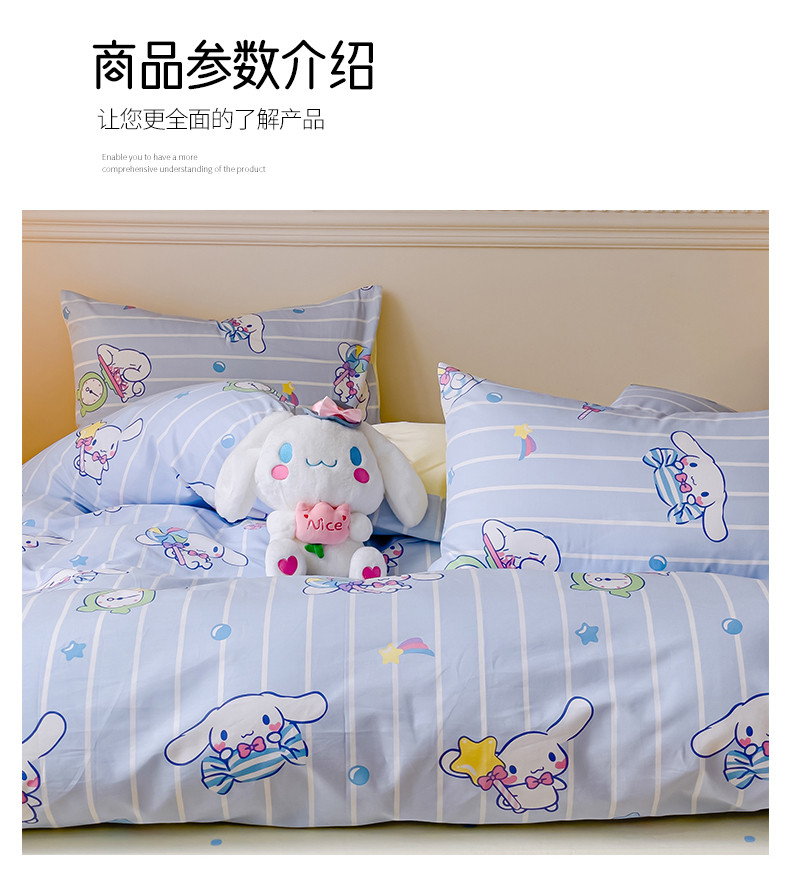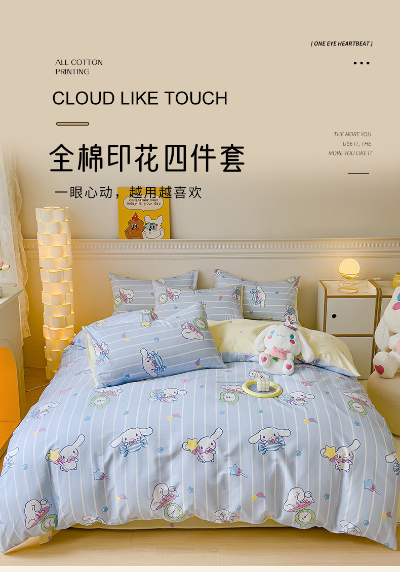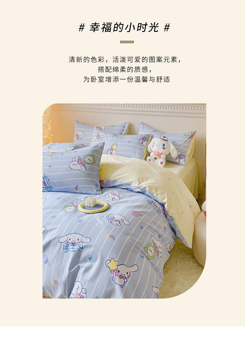 当前位置: 91家纺网 > 商品网购 > 床品套件 > 四件套 > 全棉普通四件套 > 金丝鸟家纺 2023新款全棉印花三利欧库洛米系列四件套 条纹玉桂狗