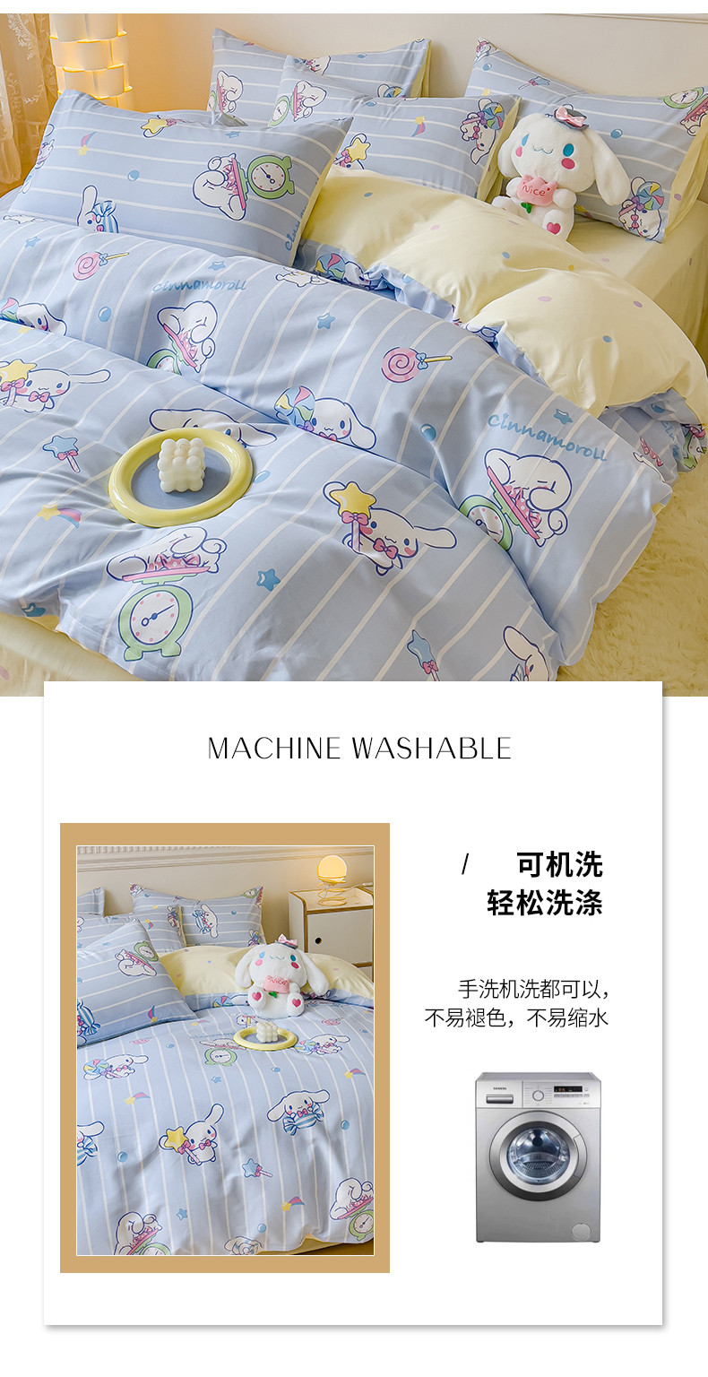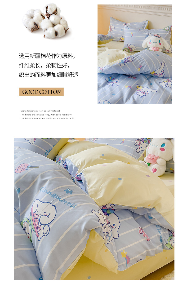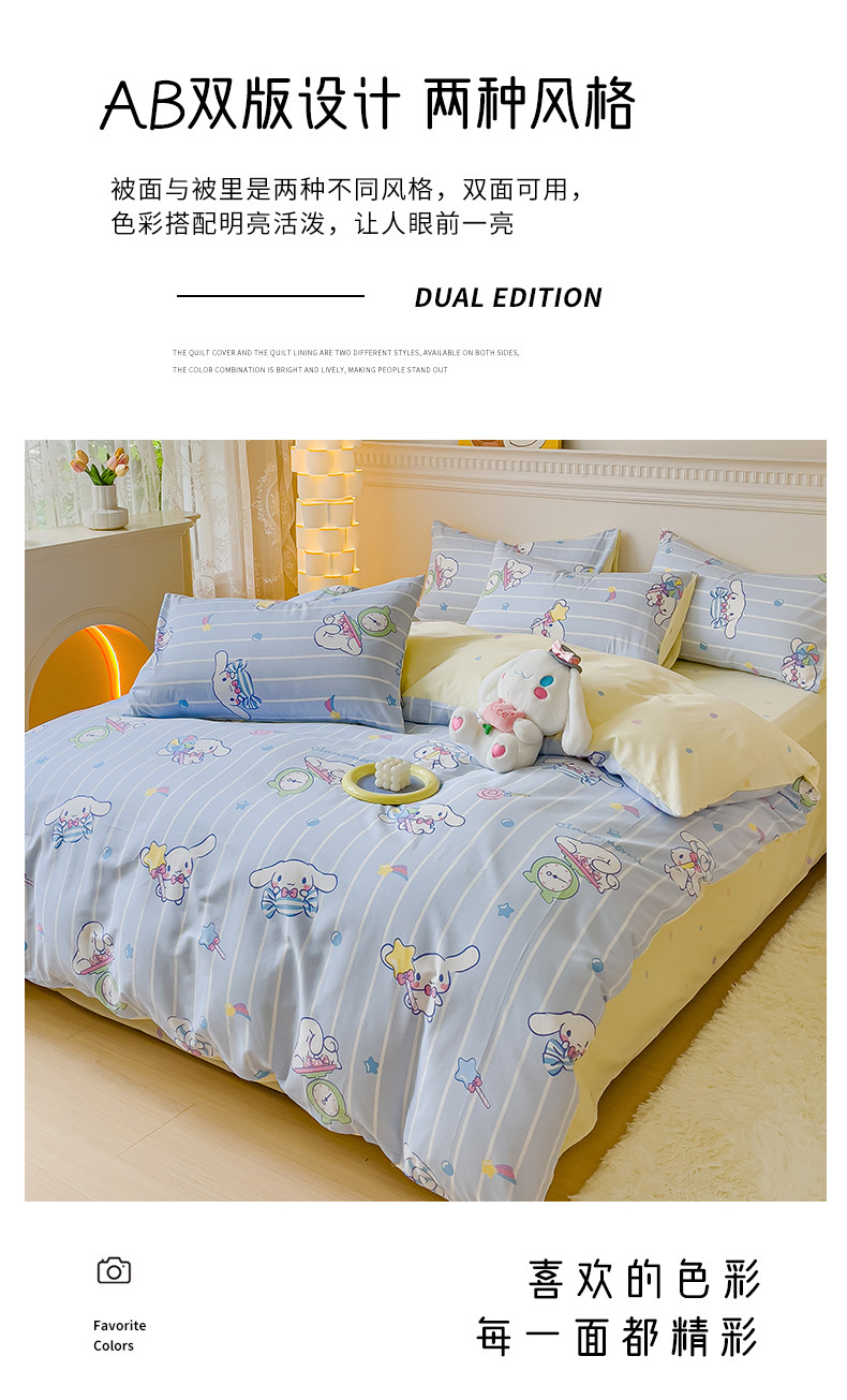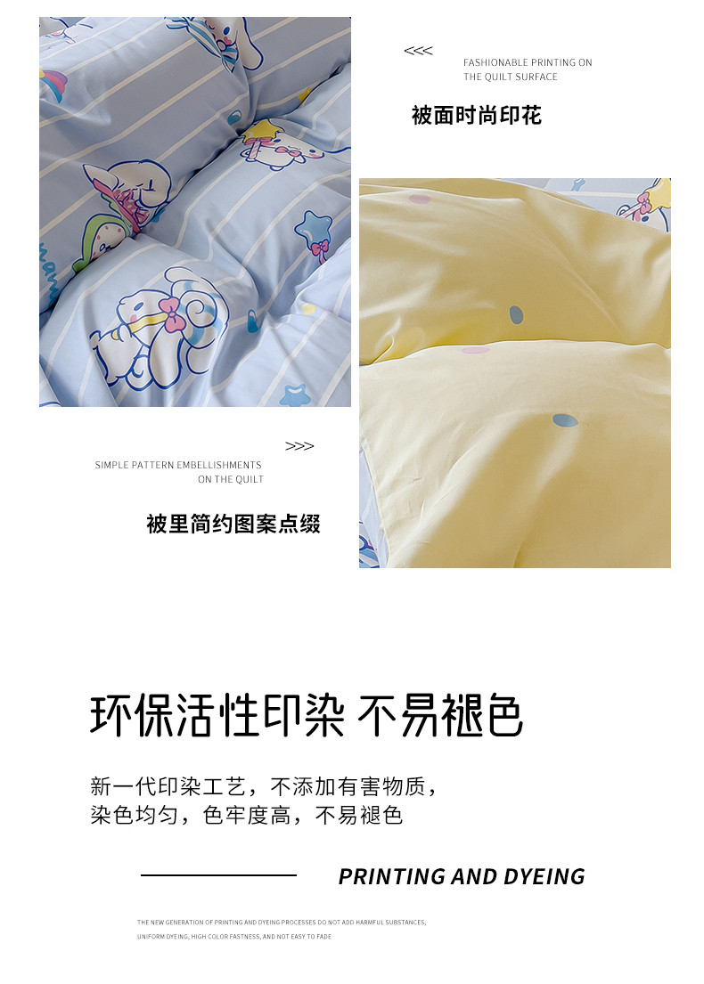 当前位置: 91家纺网 > 商品网购 > 床品套件 > 四件套 > 全棉普通四件套 > 金丝鸟家纺 2023新款全棉印花三利欧库洛米系列四件套 条纹玉桂狗